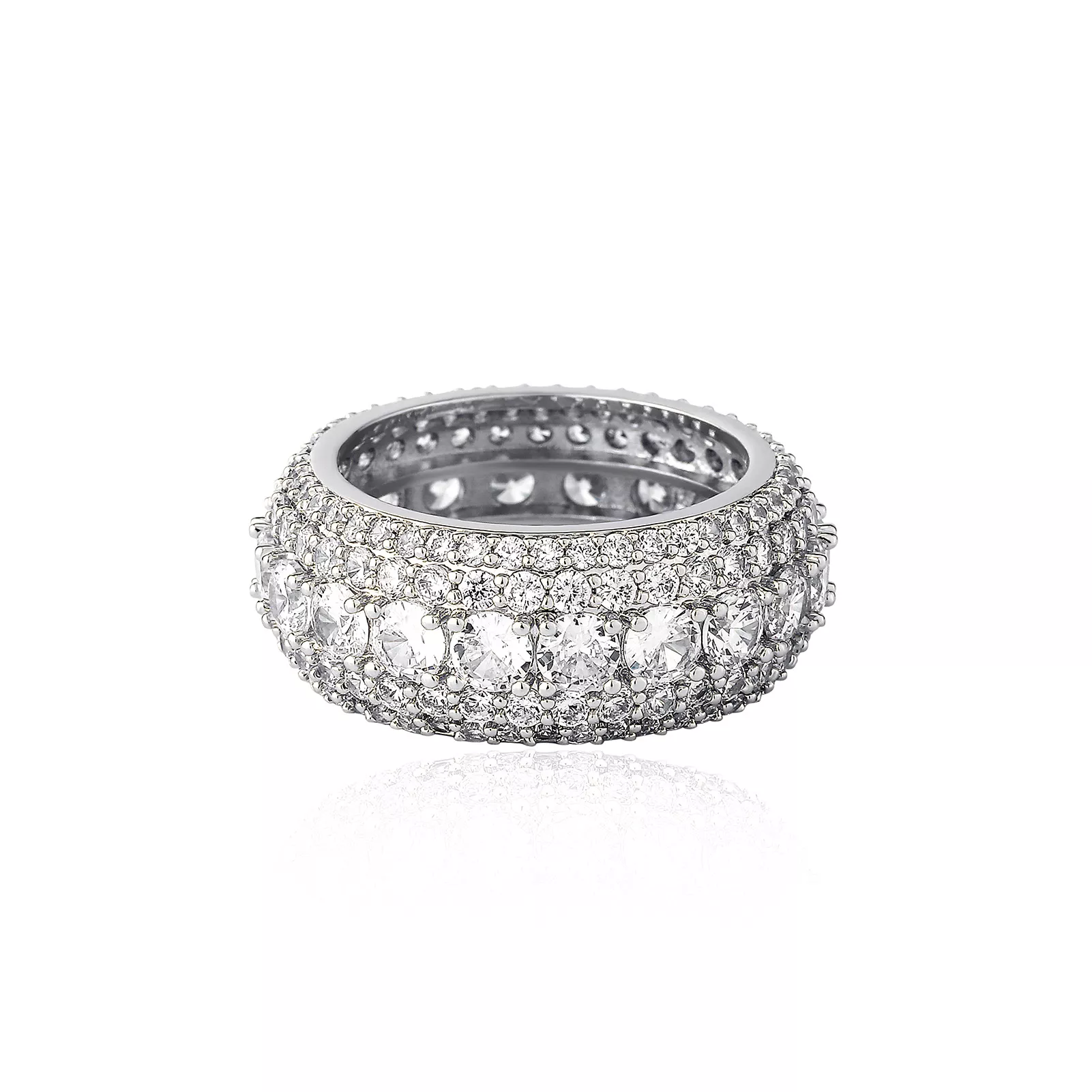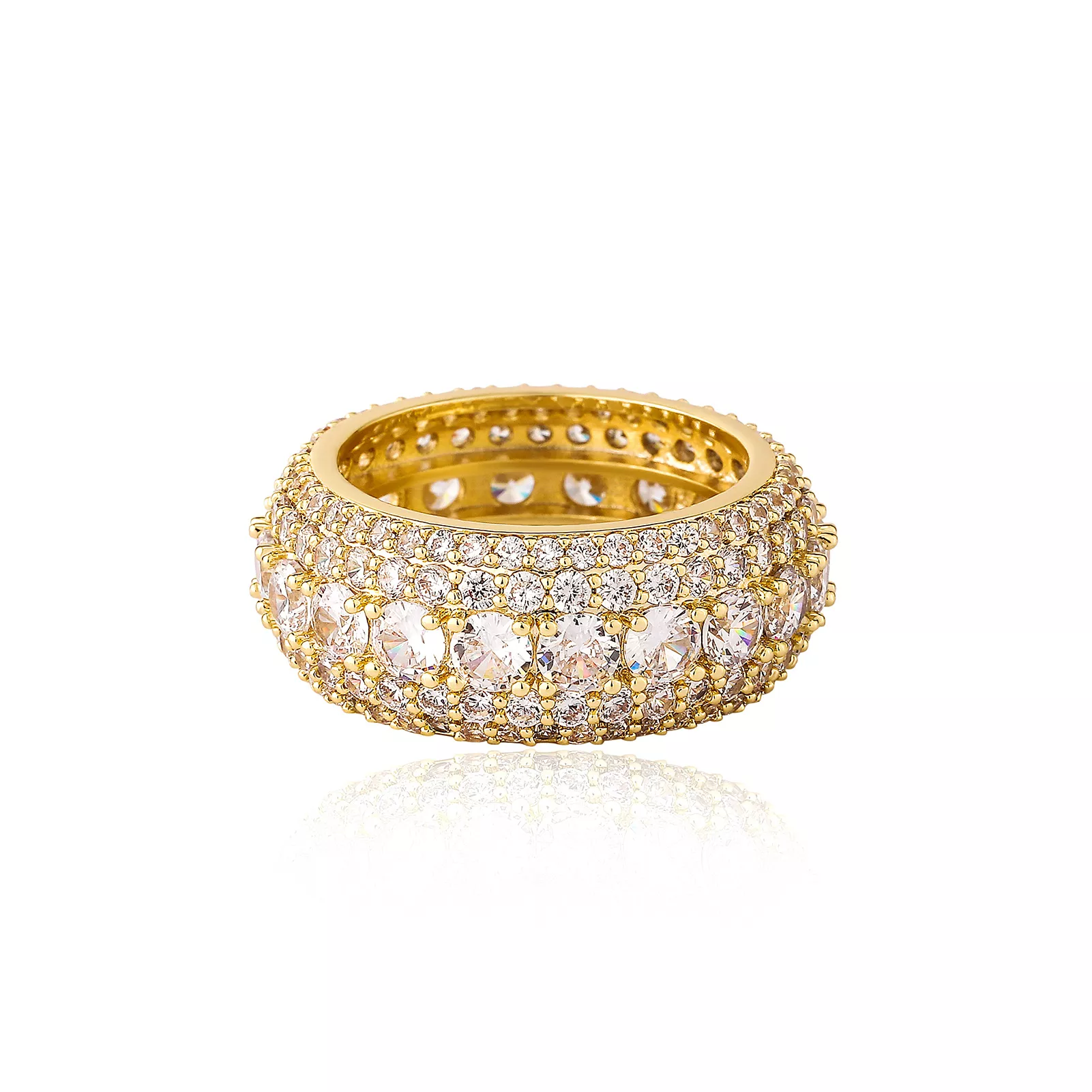 This stunning ring is made from high-quality copper and encrusted with clear cubic zirconia stones that mimic the brilliance of real diamonds. Each stone is meticulously set in a pave setting to create an unbroken surface of sparkle. Finished in a radiant gold or silver tone with 14K plating, the ring combines durability with timeless shine. The smooth inner band ensures comfort, while the 0.4-inch (10mm) surface width gives it a powerful, masculine look.