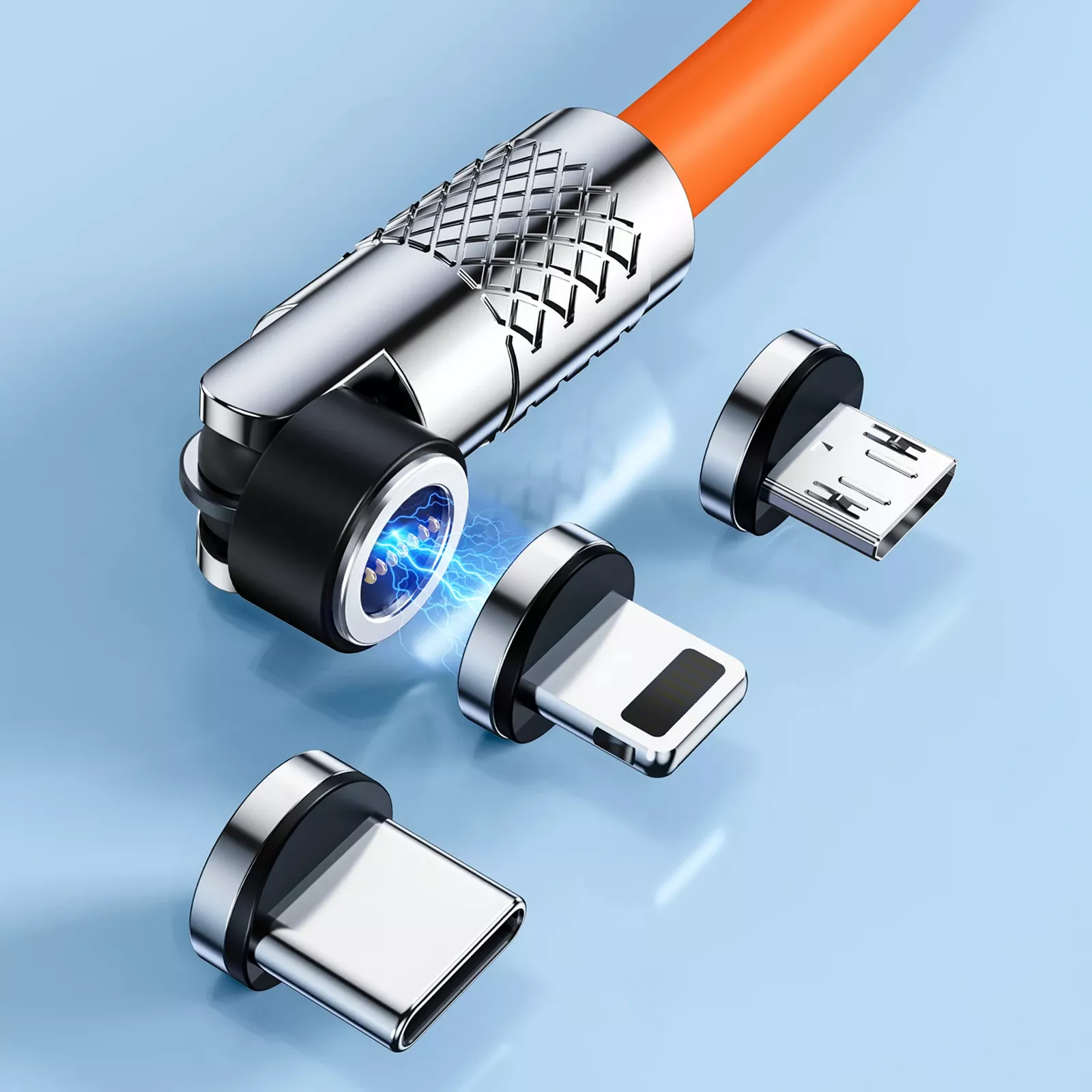 Say goodbye to tangled cables and slow charging with this innovative 120W rotatable fast charging cable. Designed for Samsung devices and more, this high-speed charging cable comes equipped with three magnetic adapters for seamless compatibility with Type-C, Lightning, and Micro USB devices. Whether you’re at home, in the office, or on the go, this charging solution is the ultimate tool to keep your devices powered up in no time. It’s the perfect solution for those who need a fast, efficient, and reliable charging experience.