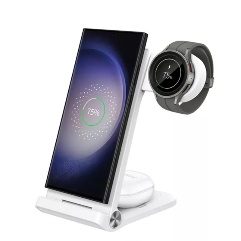 Discover the ultimate convenience with the 15W 3-in-1 Magnetic Wireless Charger Stand designed exclusively for Samsung devices. This elegant and versatile charger stand is the perfect companion for your busy lifestyle, keeping your smartphone, Galaxy Watch, and Galaxy Buds powered up and ready to go. Whether you’re at home, in the office, or on the go, this wireless charger stand is your go-to solution for fast and efficient charging.