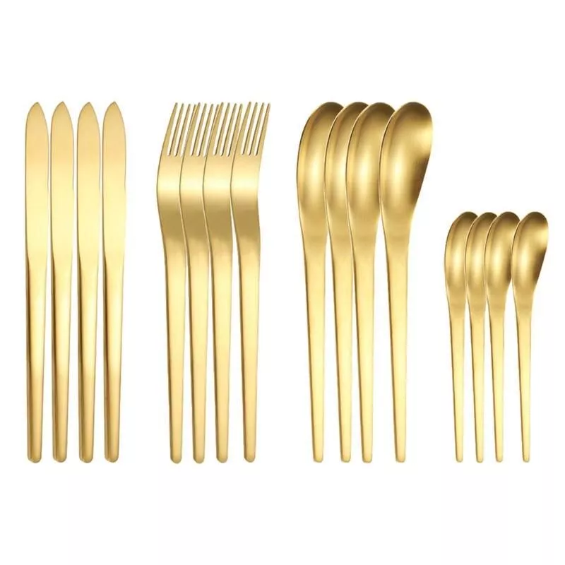 16-Piece Elegant Matte Gold Stainless Steel Cutlery Set