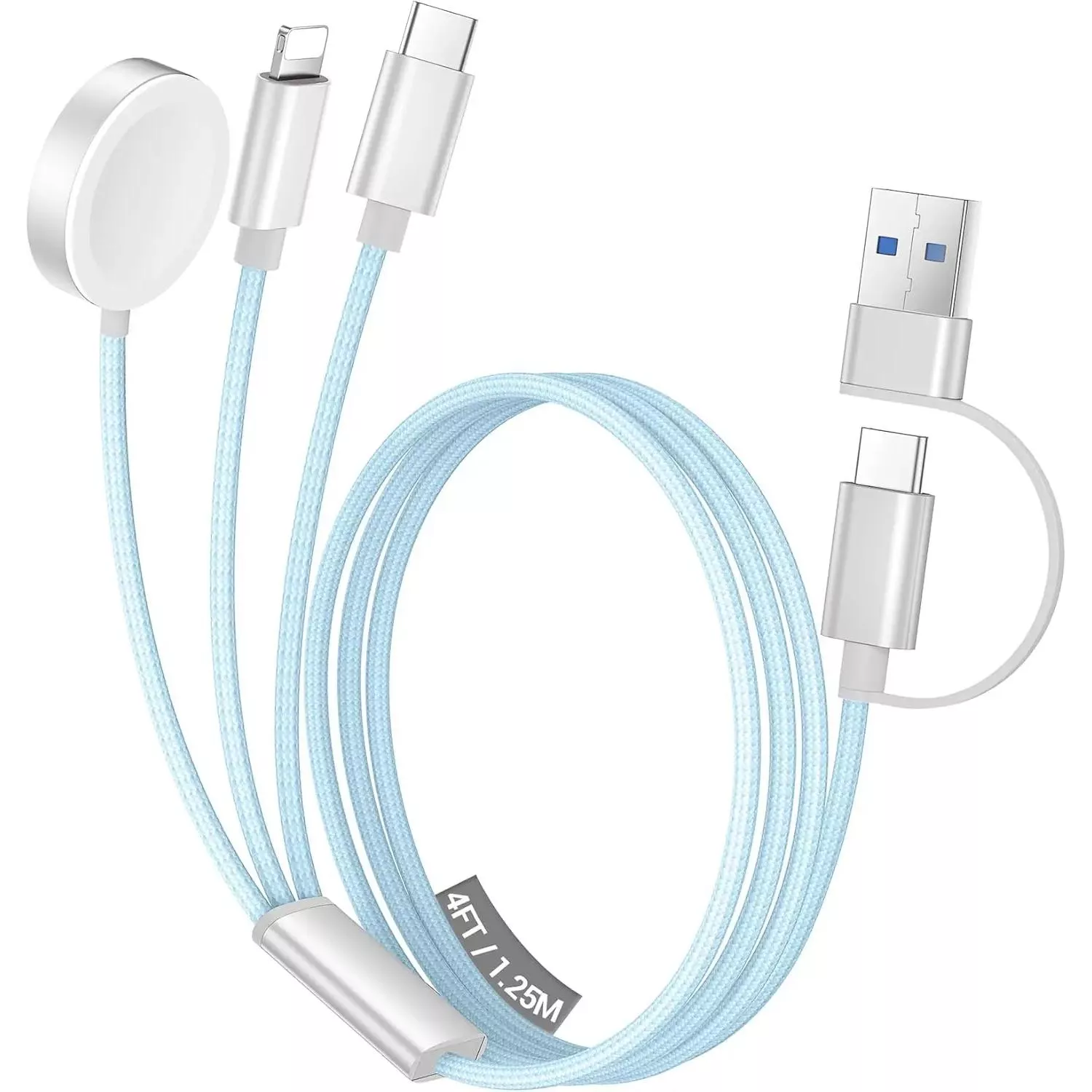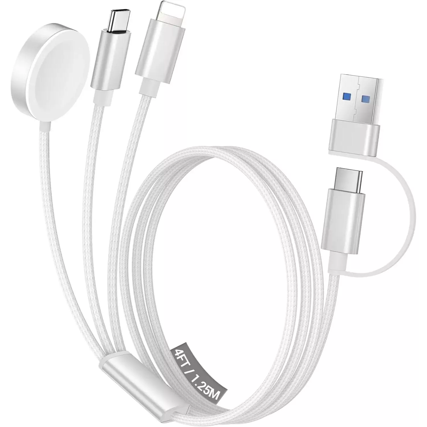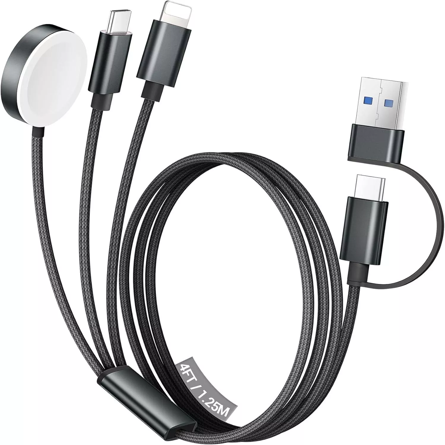 This 3-in-2 Multi Charging Cable is a game-changer for anyone who loves to stay organized and powered up. Whether you’re heading out for a weekend getaway, a road trip, or just need an all-in-one solution for your tech, this versatile charging cable is a must-have. Its 4-foot length ensures you have enough reach, whether you’re in the car, on an airplane, or charging at your desk. With its unique magnetic Apple Watch charger, fast charging capabilities, and compatibility with multiple devices, this cable offers a superior charging experience.