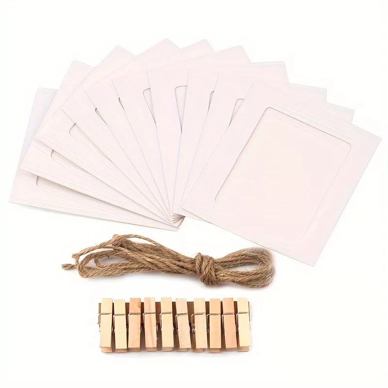 Each pack includes 10 premium-quality 4-inch photo clips crafted with care for durability and elegance. The frames are made from sturdy paper material, ensuring your cherished memories stay securely displayed. These clips are easy to hang and reposition, allowing you to customize your wall or banner effortlessly.