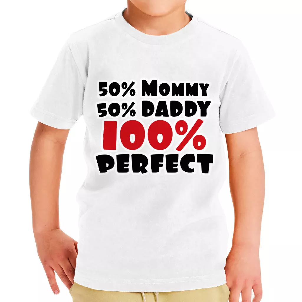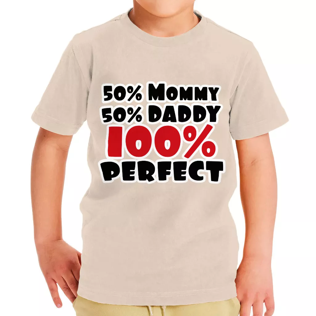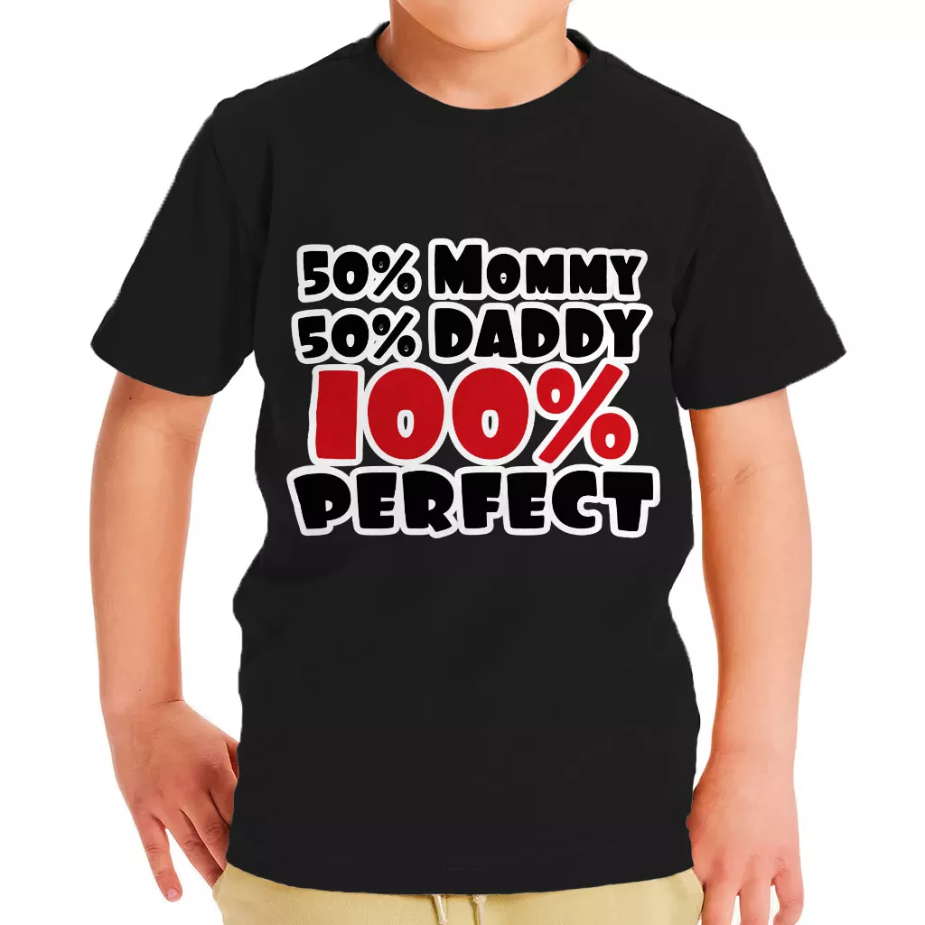 50 Mommy 50 Daddy 100 Perfect Toddler T-Shirt – Trendy Kids’ T-Shirt – Cute Tee Shirt for Toddler