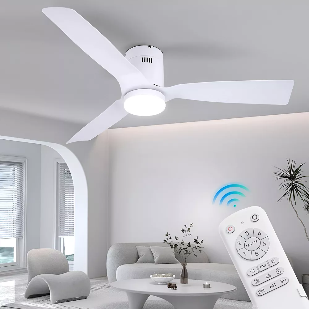 Upgrade your space with the perfect blend of elegance, efficiency, and convenience. This 52-inch flush mount ceiling fan in a clean white finish is designed for modern living, especially in rooms with low ceilings. With its low-profile design and powerful yet whisper-quiet DC motor, it offers reliable airflow while saving energy—all without taking up extra vertical space.