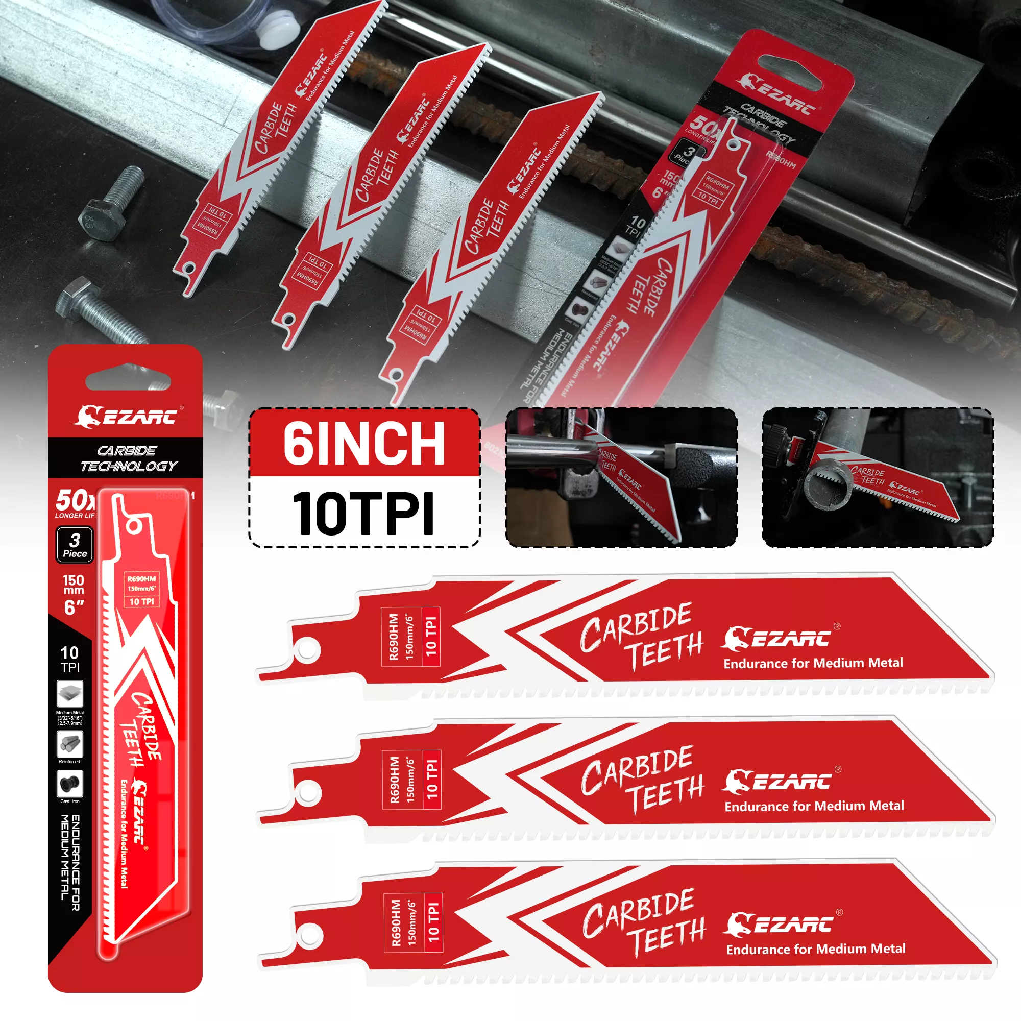 Upgrade your cutting performance with this 3-piece Carbide Reciprocating Saw Blade Set, engineered for professionals who demand endurance, precision, and efficiency. Designed for medium-thickness metals like steel, stainless steel, and cast iron, these 6-inch and 9-inch blades deliver smooth, accurate cuts that make tough jobs easier and faster. Perfect for construction crews, metal fabricators, and DIY enthusiasts who refuse to compromise on quality.