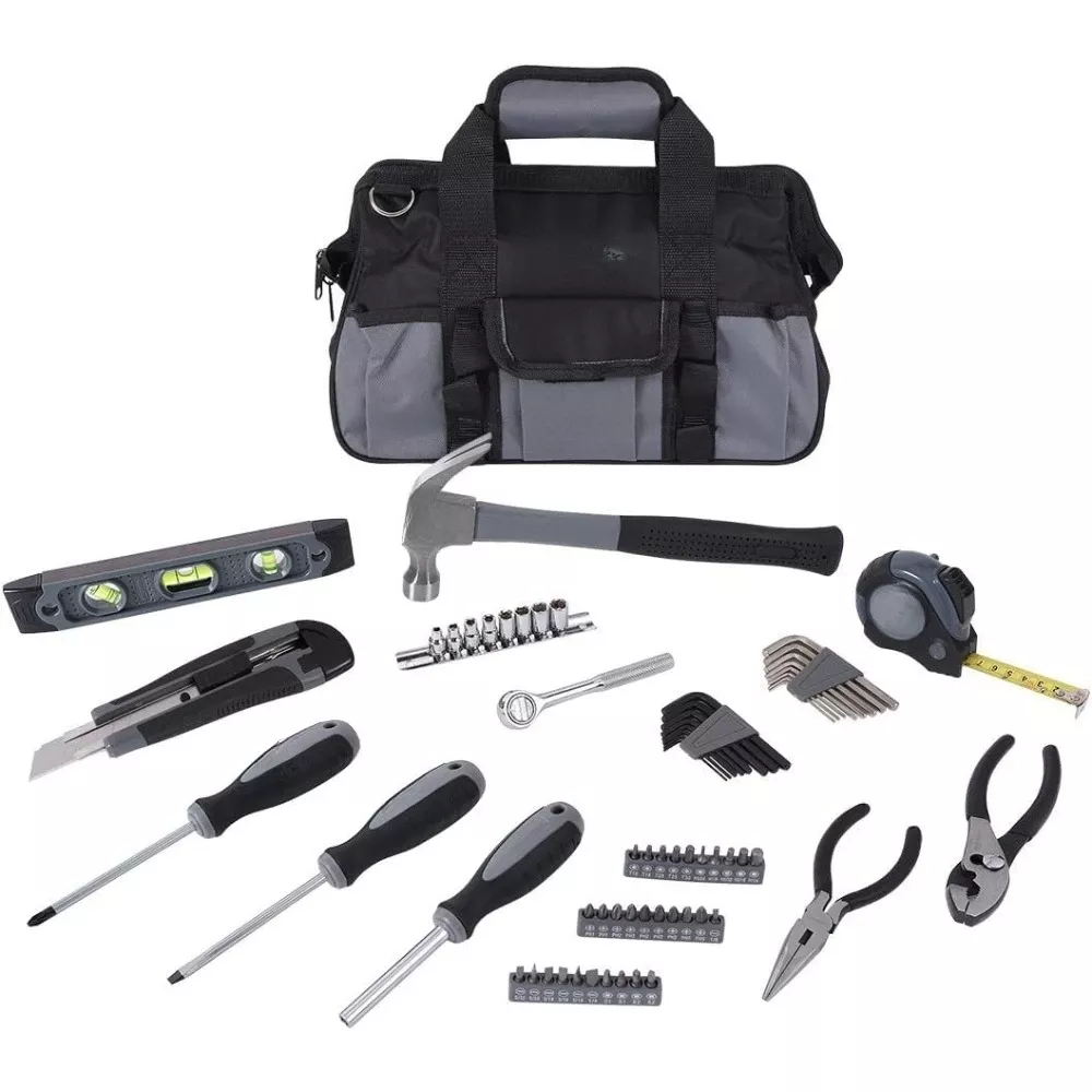 Take the hassle out of home maintenance with this 65-piece home repair tool kit designed to handle a wide variety of household tasks. Neatly packed in a durable carrying case, this set ensures you have the right tool at the right time—whether you’re tightening a loose hinge, hanging a picture frame, or assembling furniture. With a sleek silver and black finish, it’s as stylish as it is functional.