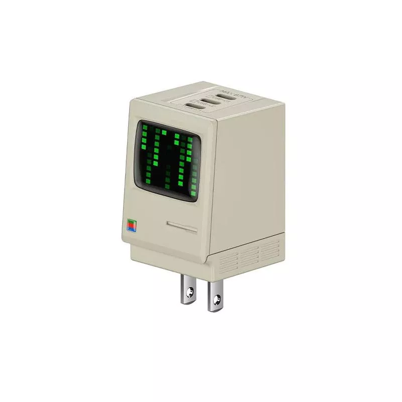 Elevate your charging experience with the sleek and retro-inspired 67W GaN Charger, designed specifically for Apple enthusiasts. With its eye-catching design reminiscent of classic Macintosh and futuristic Matrix-style digital rain display, this charger blends timeless aesthetics with cutting-edge performance. The built-in screen doesn’t just look cool—it provides real-time power output updates, so you always know what’s happening as you charge your devices.
