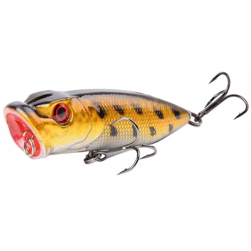 Our Popper Fishing Lure is not just another fishing accessory; it’s a game changer. With its vibrant 3D eyes and colorful body, it effortlessly attracts fish, ensuring a successful catch. The rapid action and life-like movement in the water mimic real fish, creating an irresistible target for your prey. Plus, its topwater design adds to its effectiveness, making it visible and appealing to fish near the surface.
