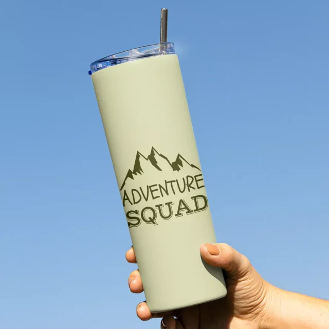Each Adventure Squad 20oz Skinny Tumbler has a non-slip rubber bottom to prevent the cup from colliding with the tabletop and making harsh noises, and to protect the bottom of the bottle from scratches and dents.