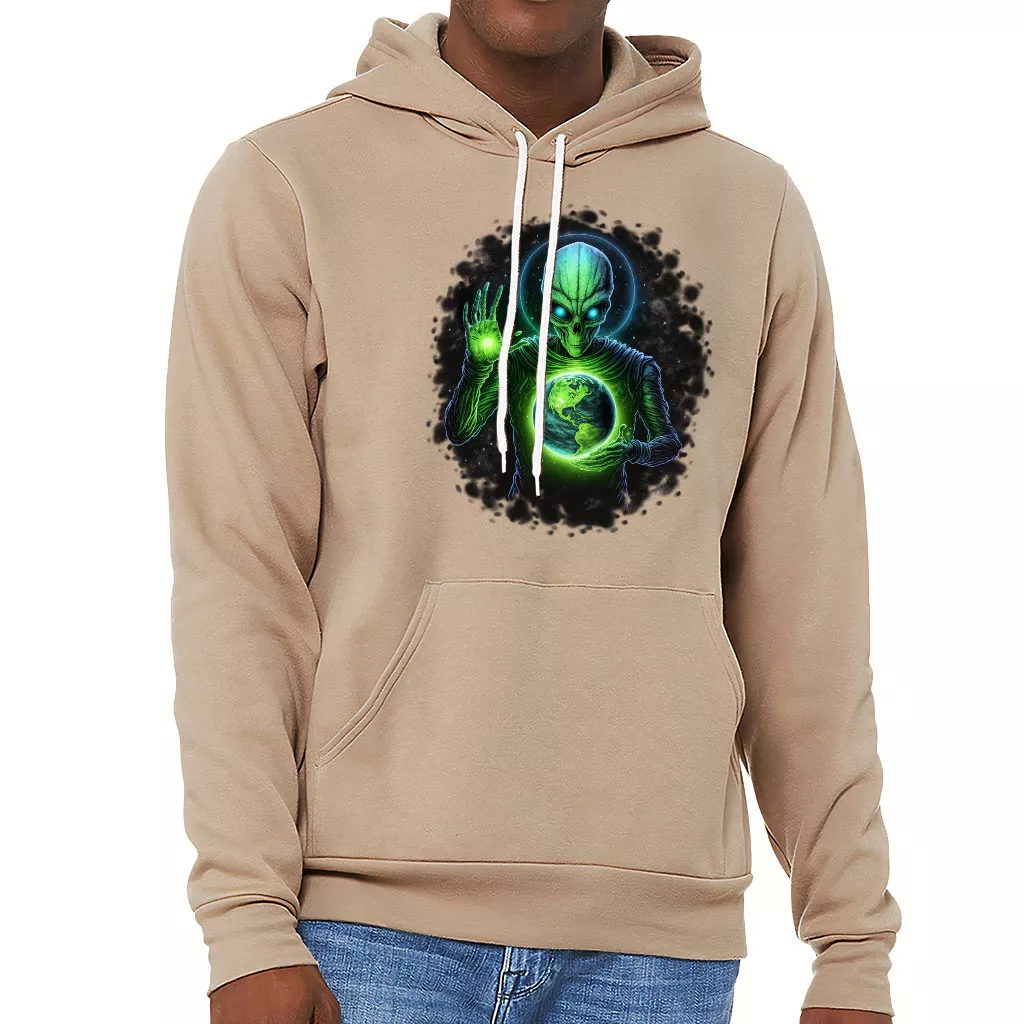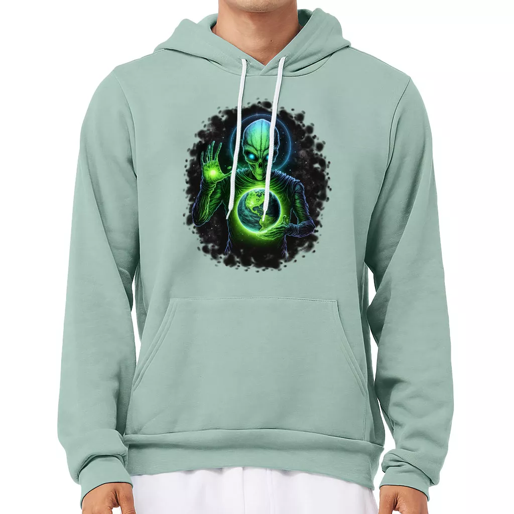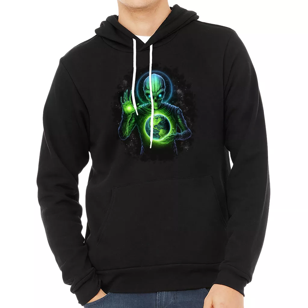 Alien Design Sponge Fleece Hoodie – Planet Hoodie – Graphic Hooded Sweatshirt