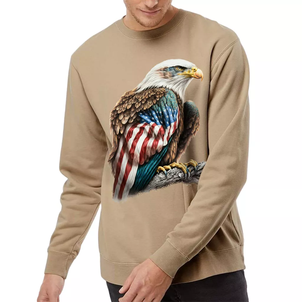 The high-quality fabric of American Flag Bald Eagle Midweight Sweatshirt makes you feel good and comfortable when wearing it. Crew neck design allows you breathing room and comfort of next level.