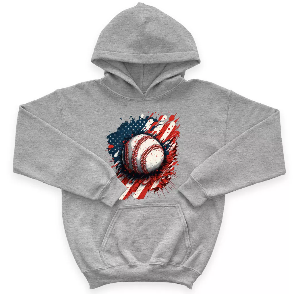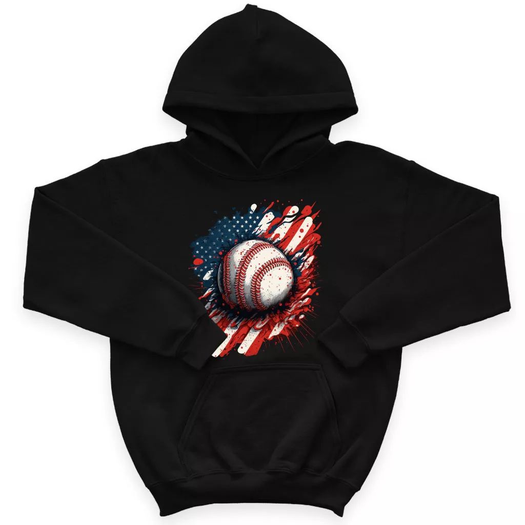 American Flag Baseball Kids’ Sponge Fleece Hoodie is no ordinary piece of clothing. Its top-stitched hood and