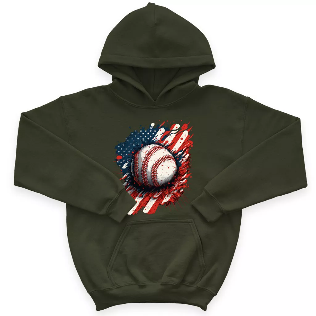 American Flag Baseball Kids’ Sponge Fleece Hoodie – Patriotic Kids’ Hoodie – Cool Design Hoodie for Kids