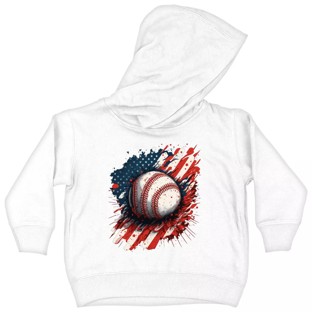American Flag Baseball Toddler Hoodie – Patriotic Toddler Hooded Sweatshirt – Cool Design Kids’ Hoodie