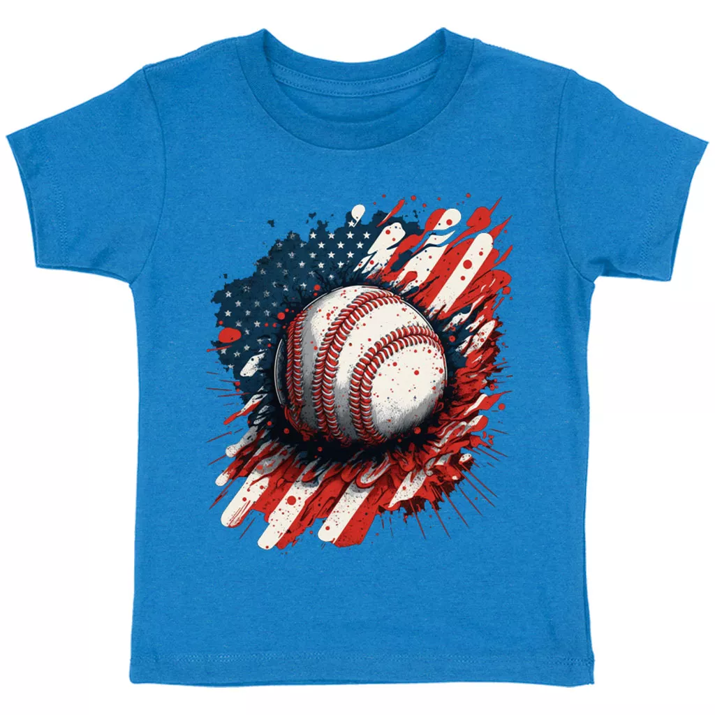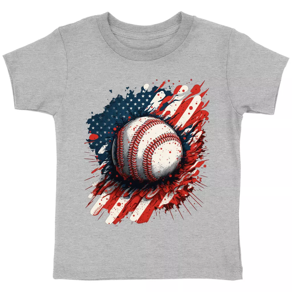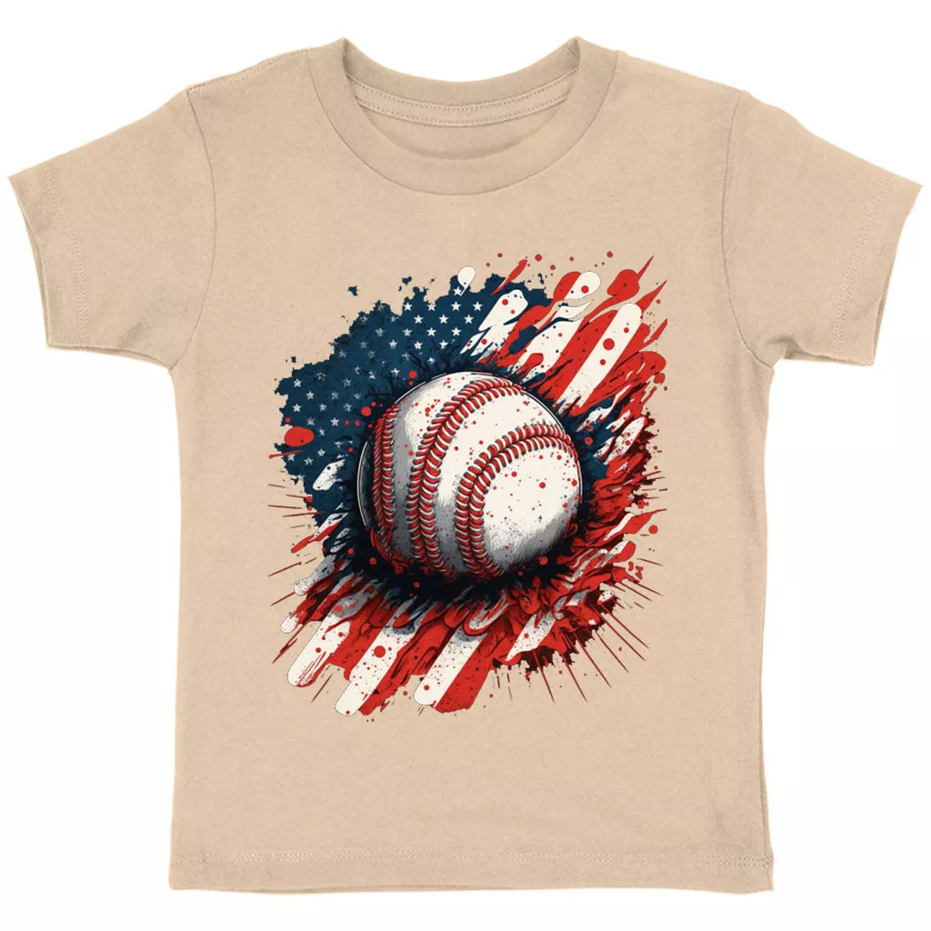 American Flag Baseball Toddler T-Shirt – Patriotic Kids’ T-Shirt – Cool Design Tee Shirt for Toddler