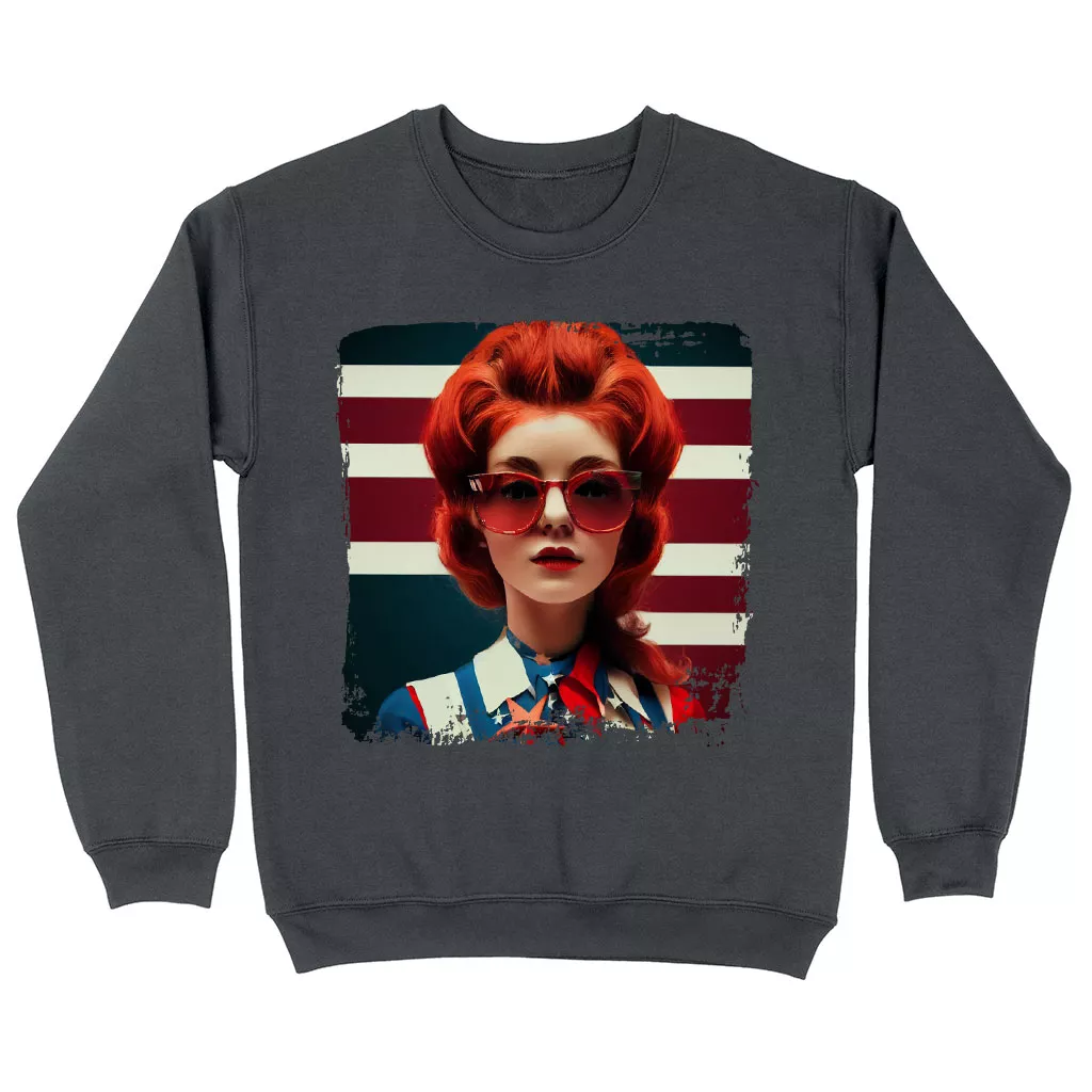 American Flag Sweatshirt – Graphic Crewneck Sweatshirt – Girl Art Sweatshirt