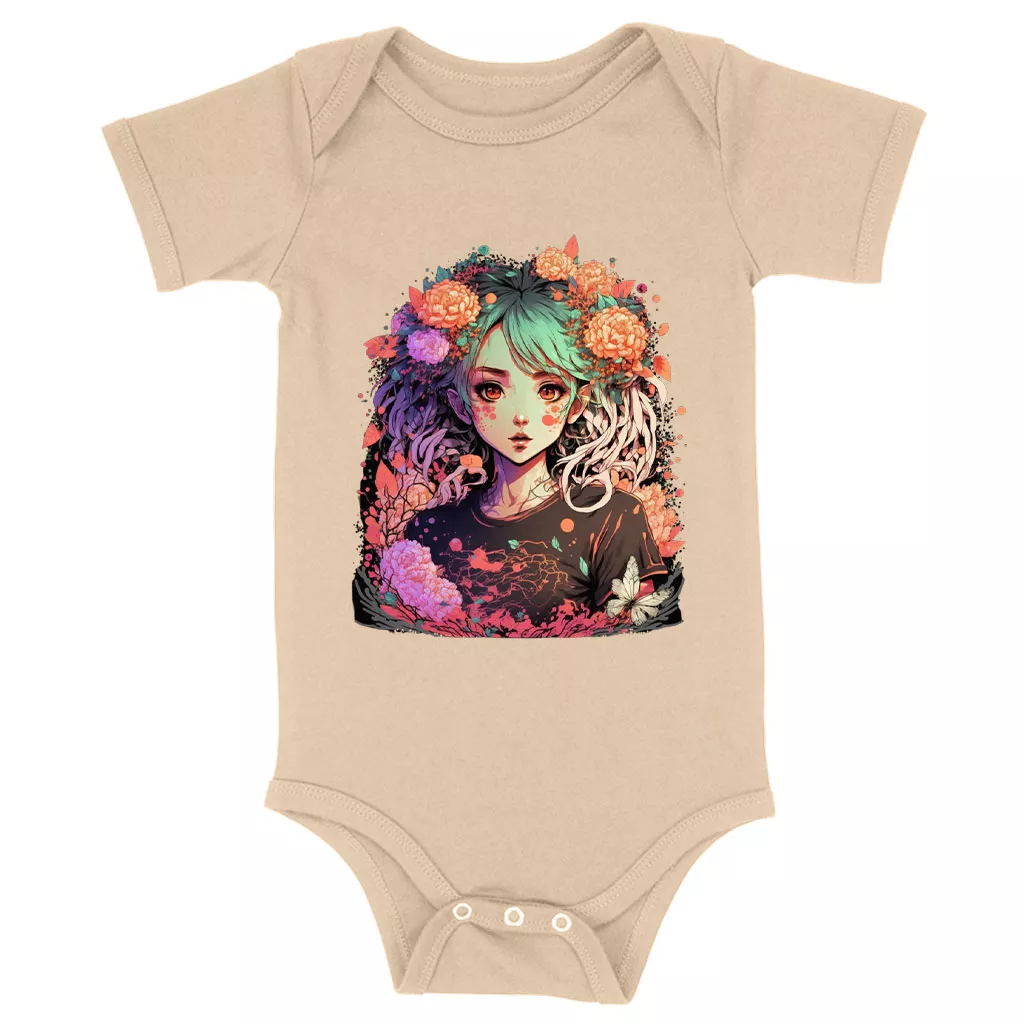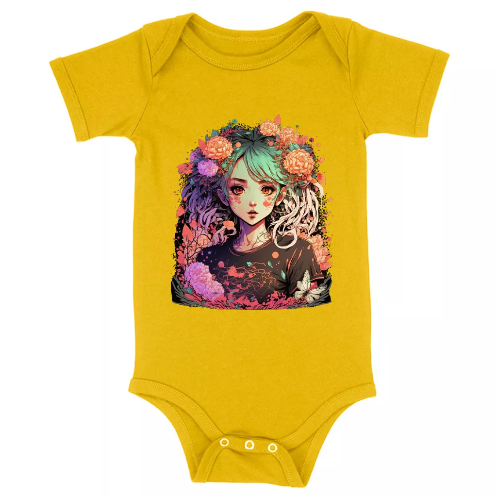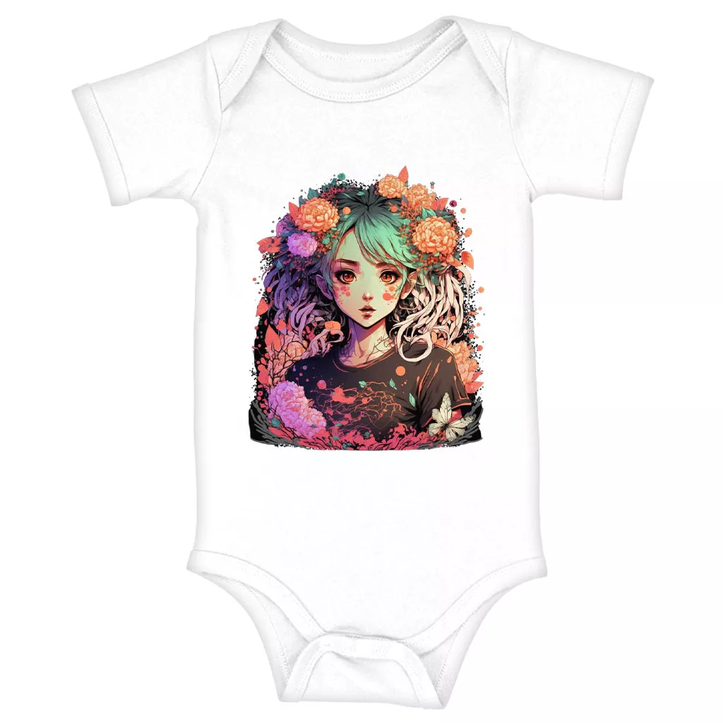 Anime Design Baby Jersey Onesie – Floral Baby Bodysuit – Cute Baby One-Piece