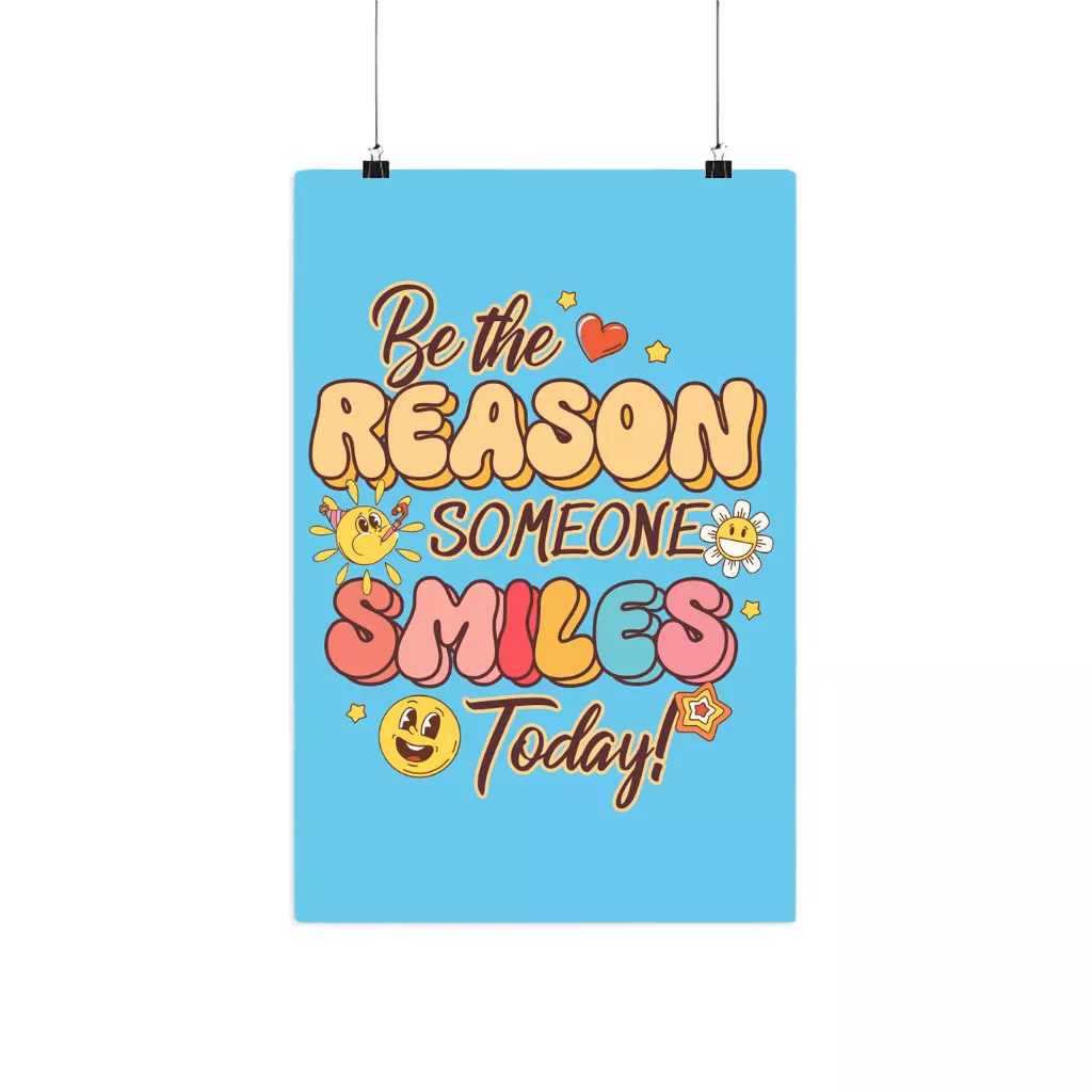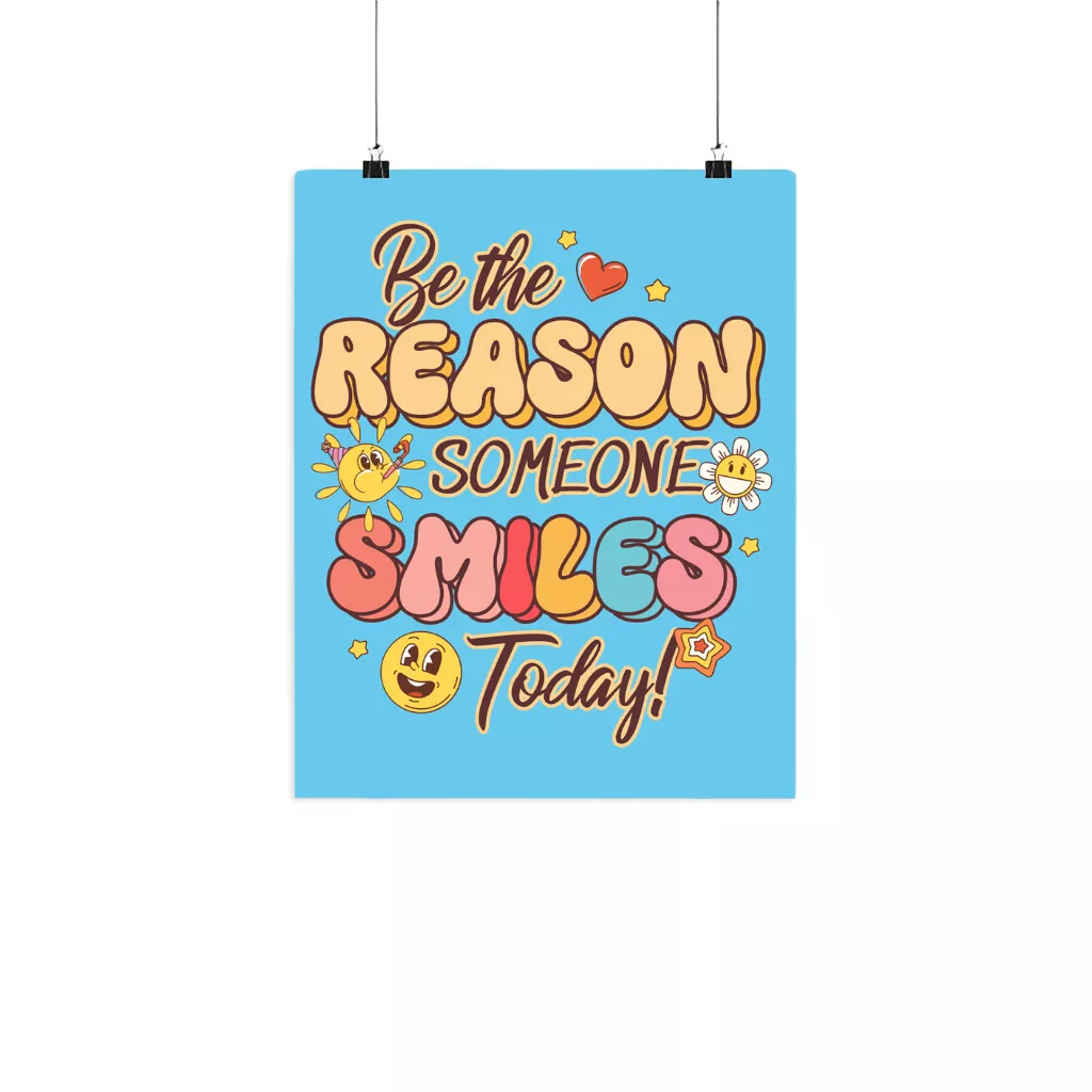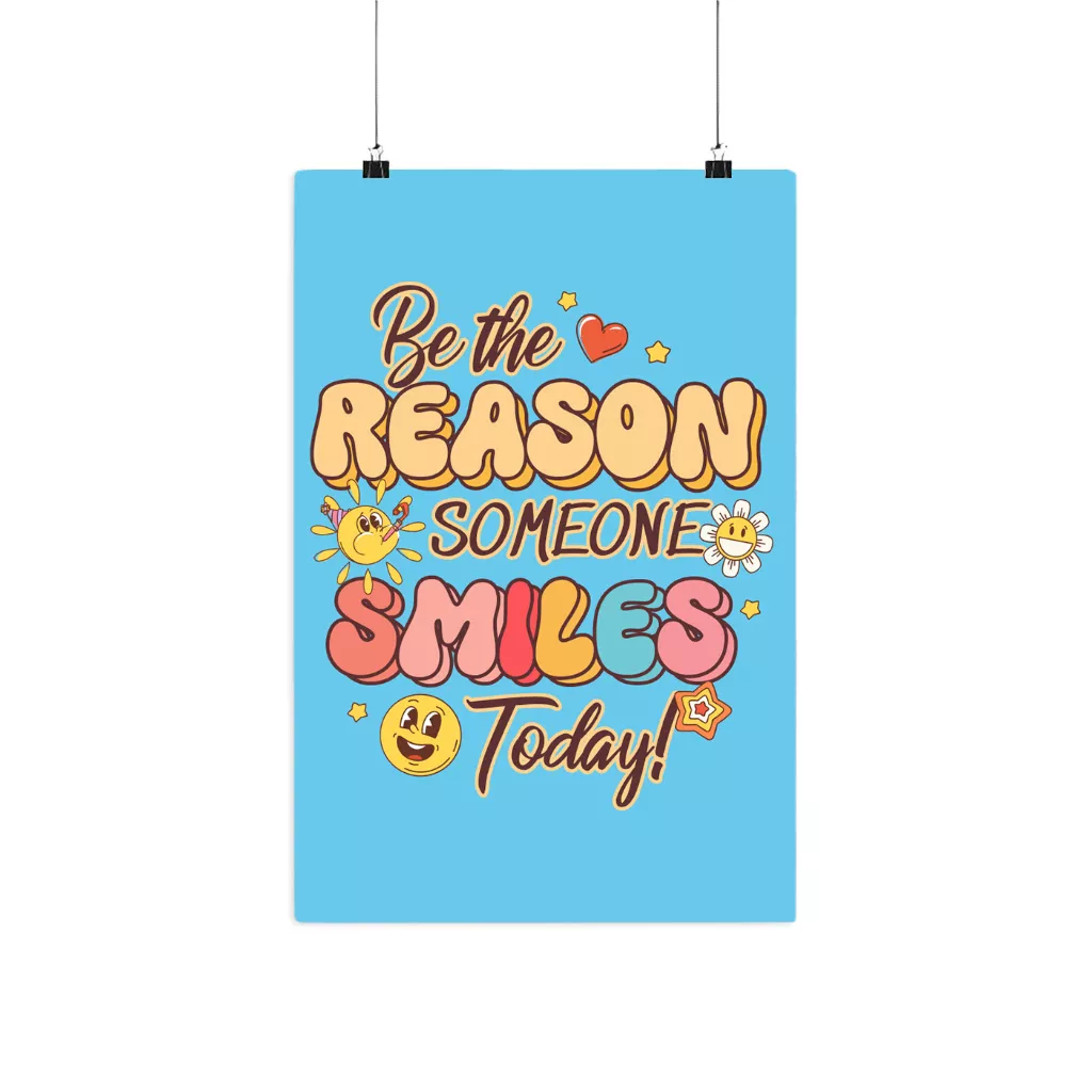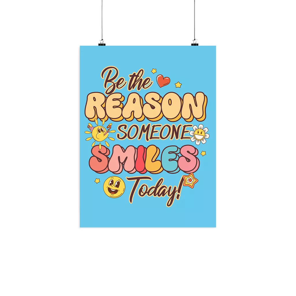 Be The Reason Someone Smiles Matte Poster is printed on museum-grade archival paper, ensuring that it will never fade or turn yellow over time. That means it’s guaranteed to preserve your creative vision with long-lasting quality and vibrant colors!
