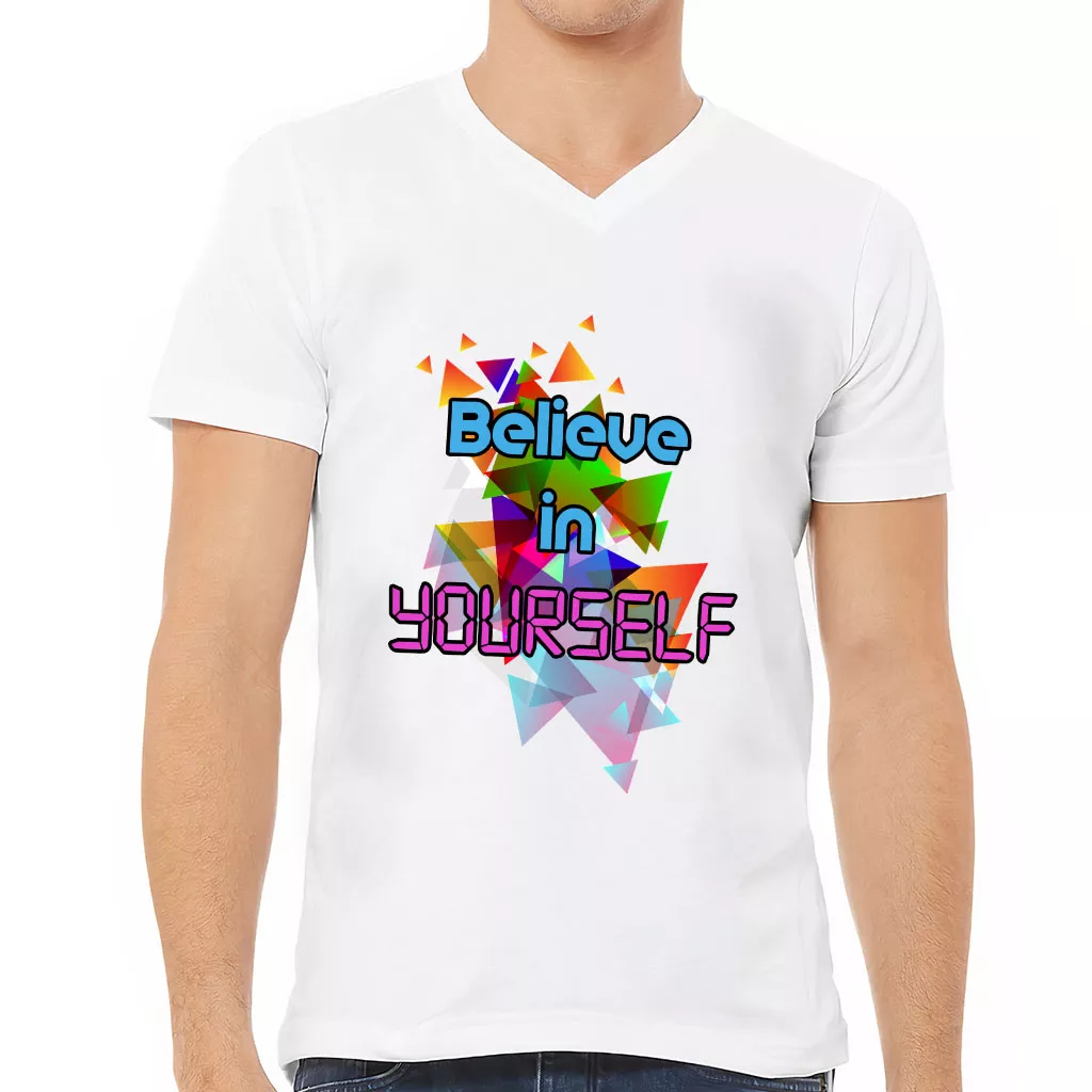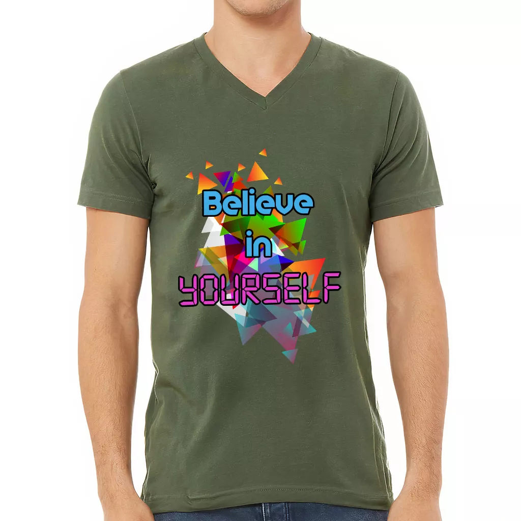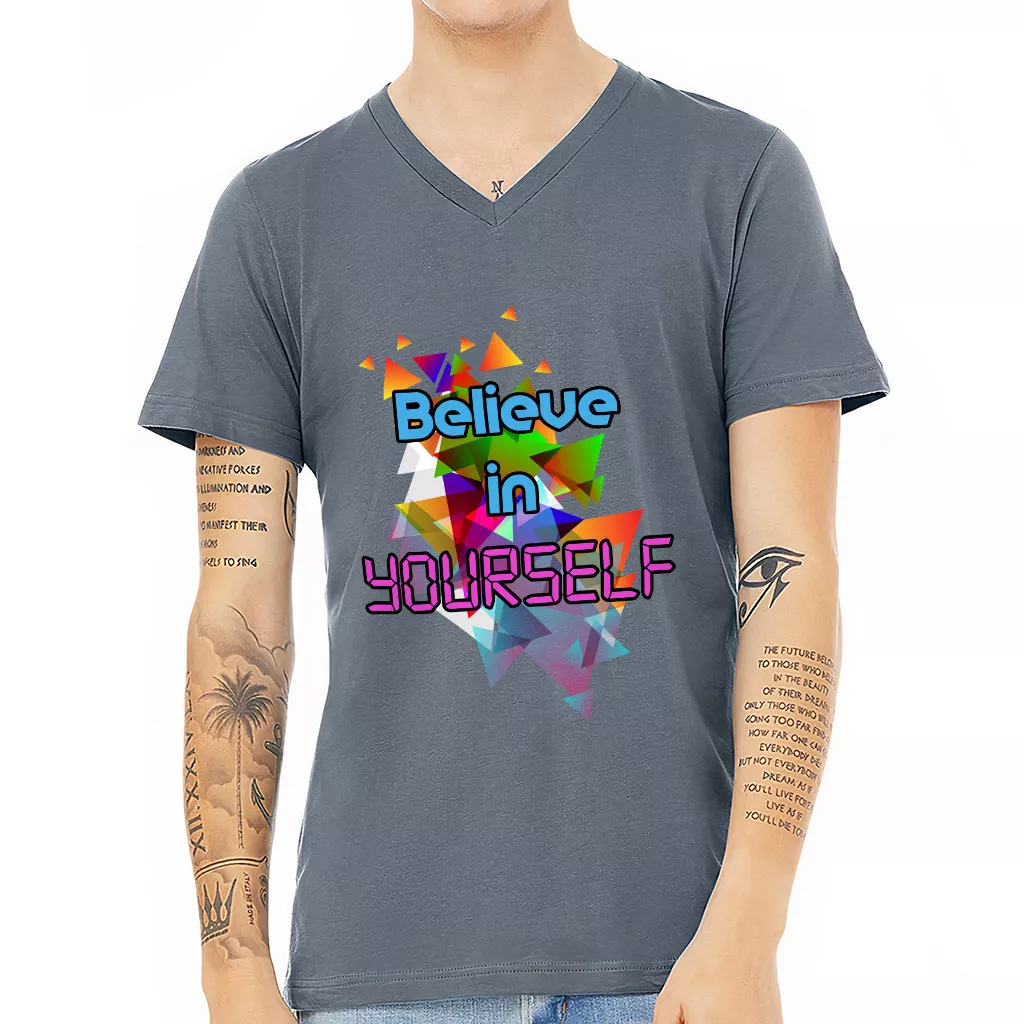 Believe in Yourself V-Neck T-Shirt – Motivational T-Shirt – Illustration V-Neck Tee