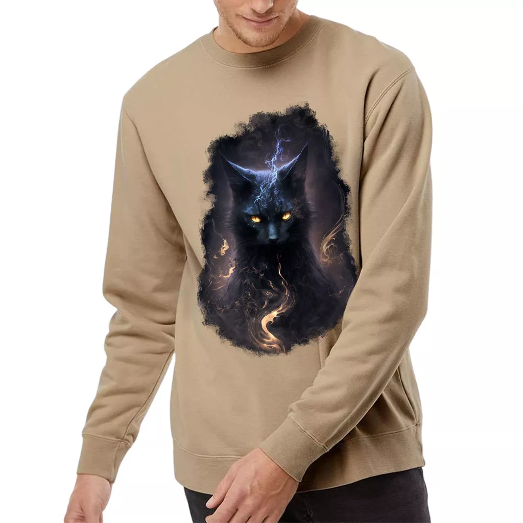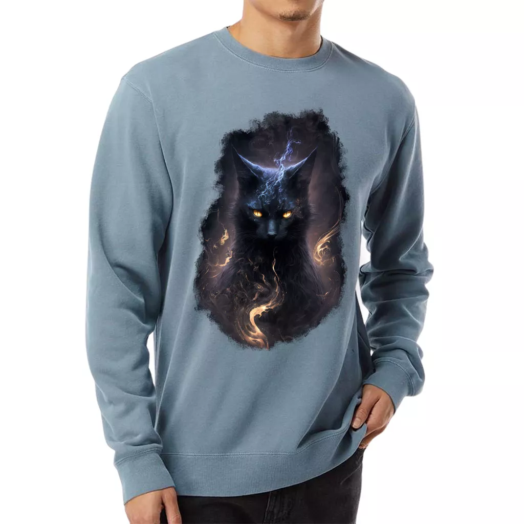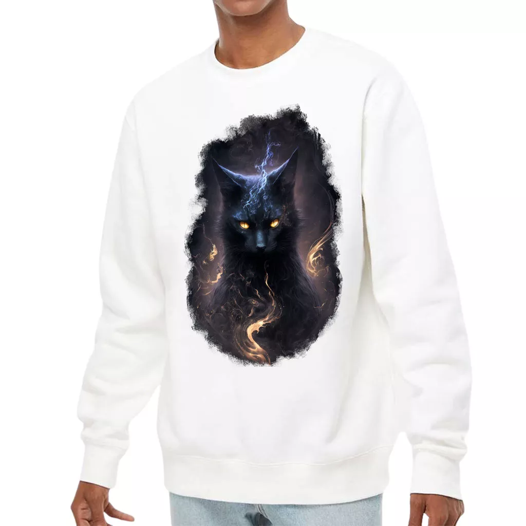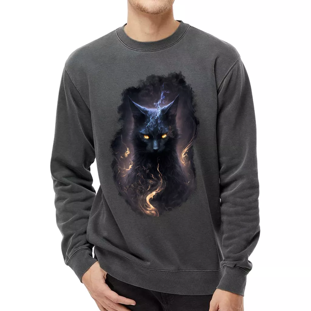 Black Cat Midweight Sweatshirt – Cool Animal Crewneck Sweatshirt – Magic Sweatshirt