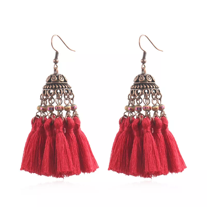 Our Bohemian Long Dangle Earrings are not just jewelry; they are a bold expression of your unique style. With their intricate craftsmanship and eye-catching design, they are sure to draw compliments wherever you go. Imagine yourself at a party, where the gentle movement of the tassels adds grace as you dance, or wearing them on a casual date, where they become a delightful topic of conversation.