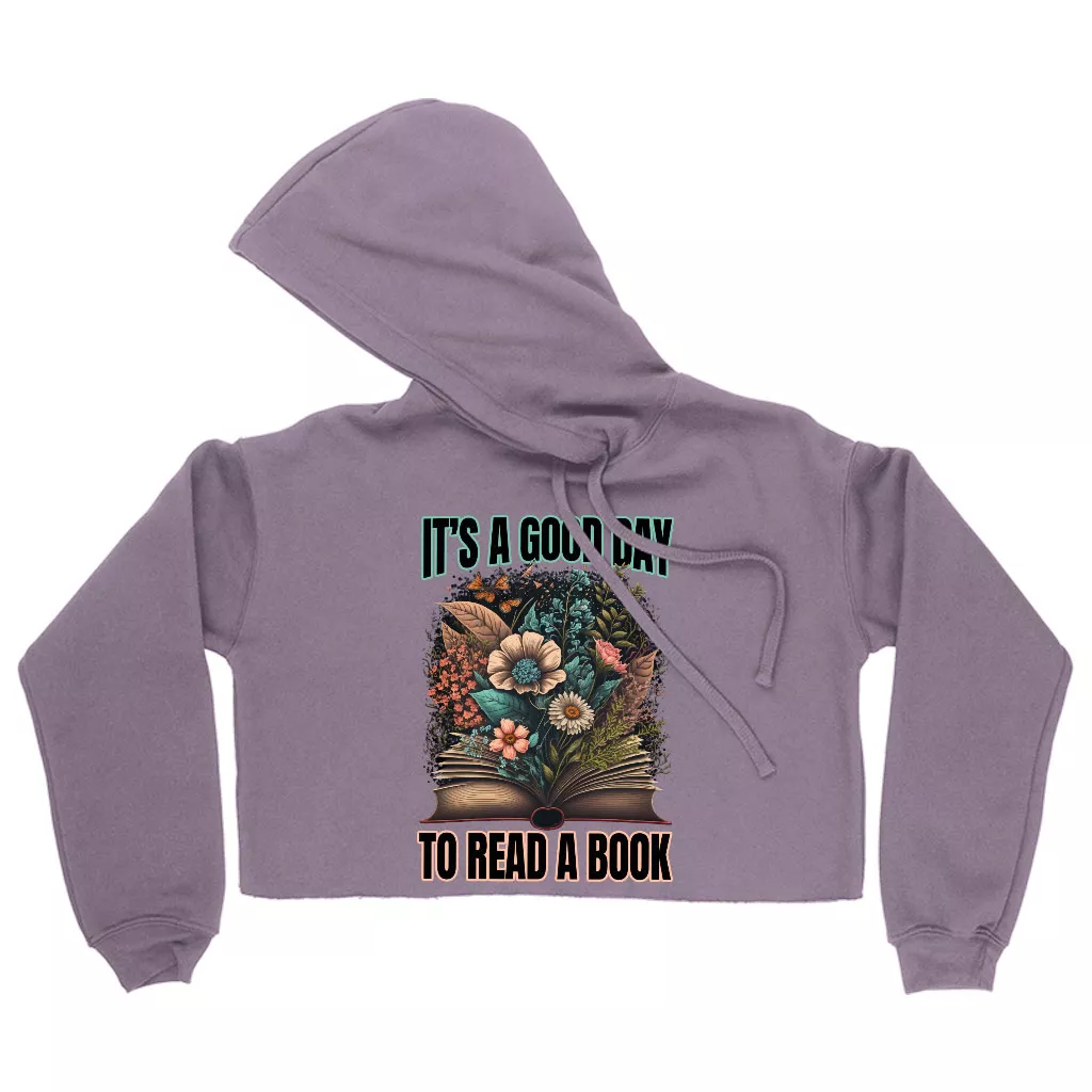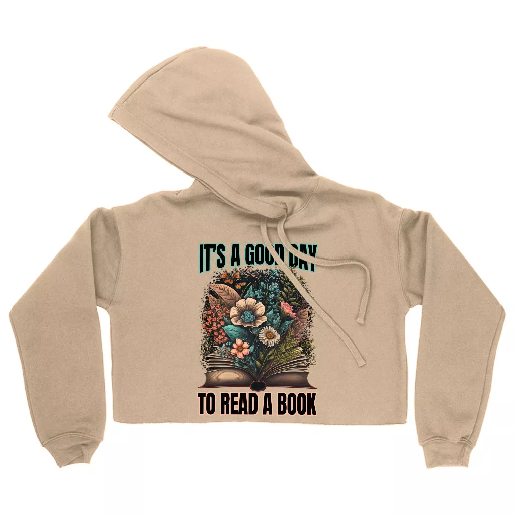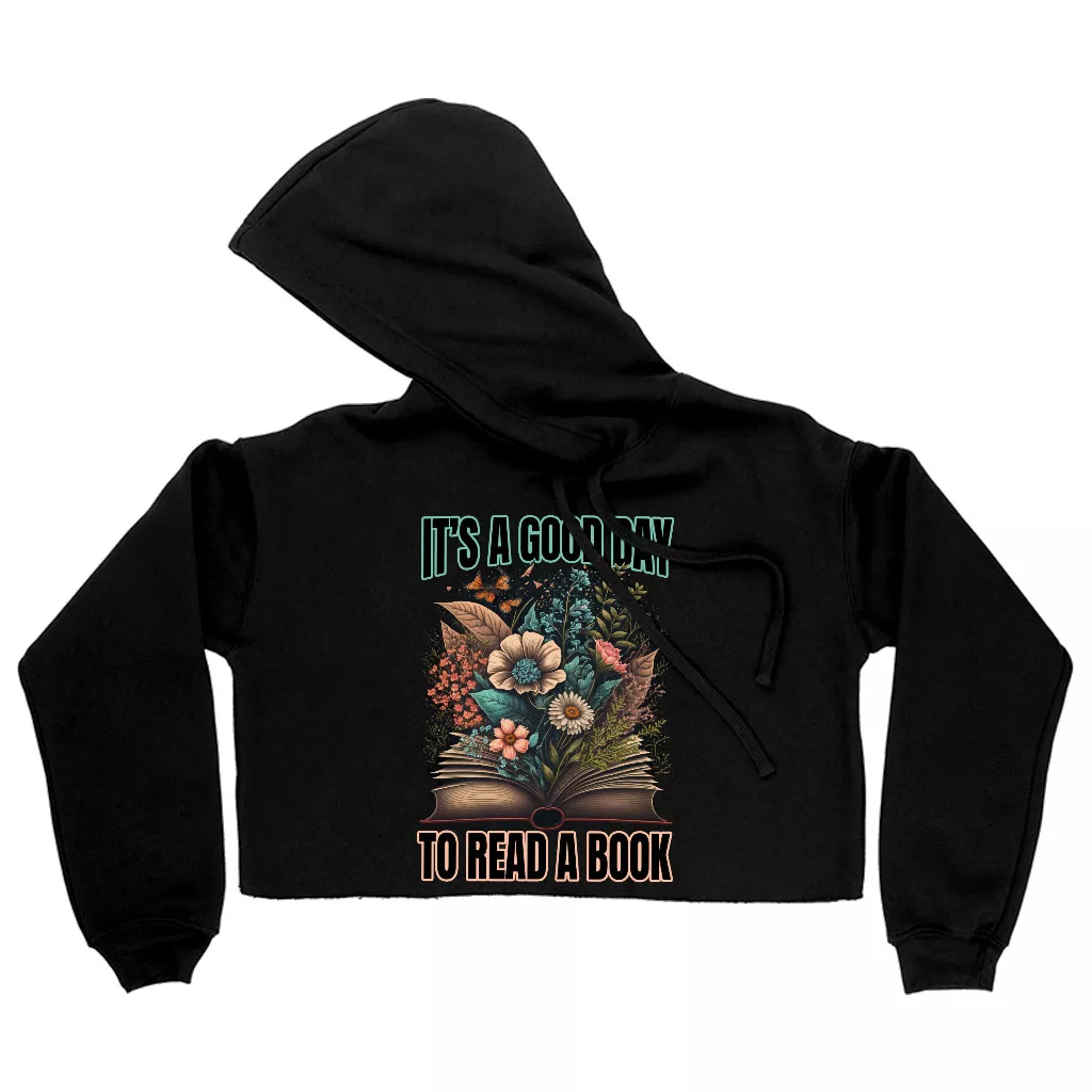 Book Lover Women’s Cropped Hoodie – Flower Design Cropped Hoodie – Themed Hooded Sweatshirt