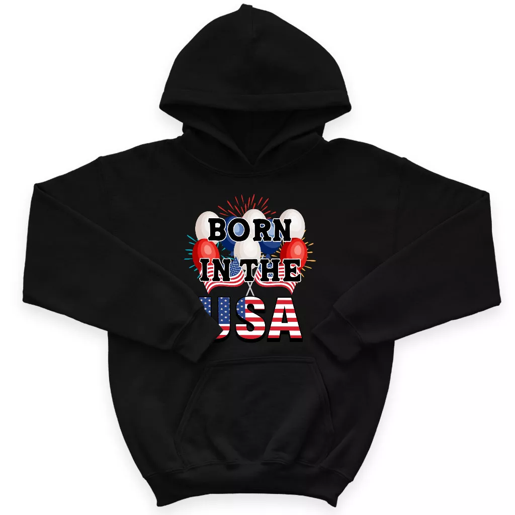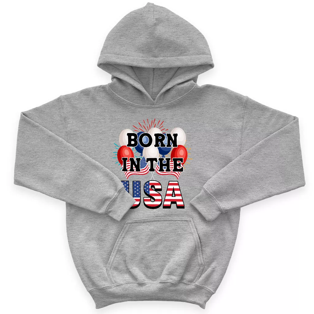 Born in the USA Kids’ Sponge Fleece Hoodie – American Flag Kids’ Hoodie – Patriotic Hoodie for Kids
