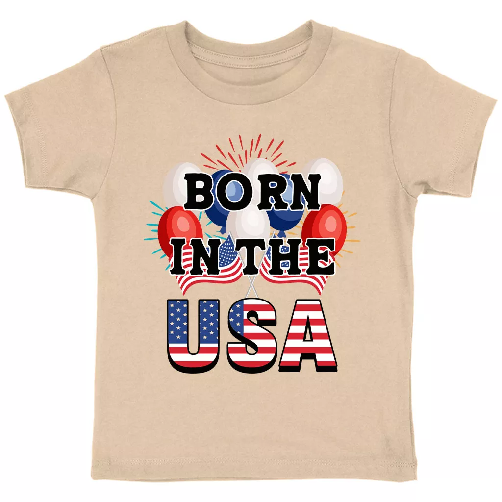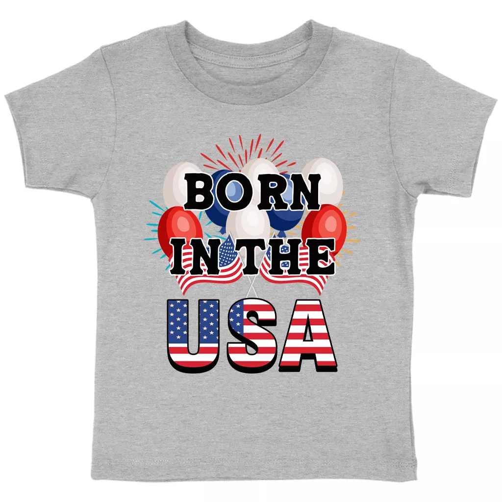 Born in the USA Toddler T-Shirt – American Flag Kids’ T-Shirt – Patriotic Tee Shirt for Toddler