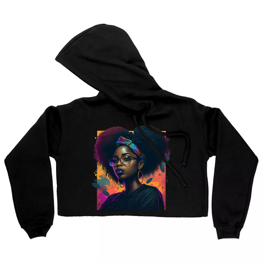 Cartoon Black Girl Art Women’s Cropped Hoodie