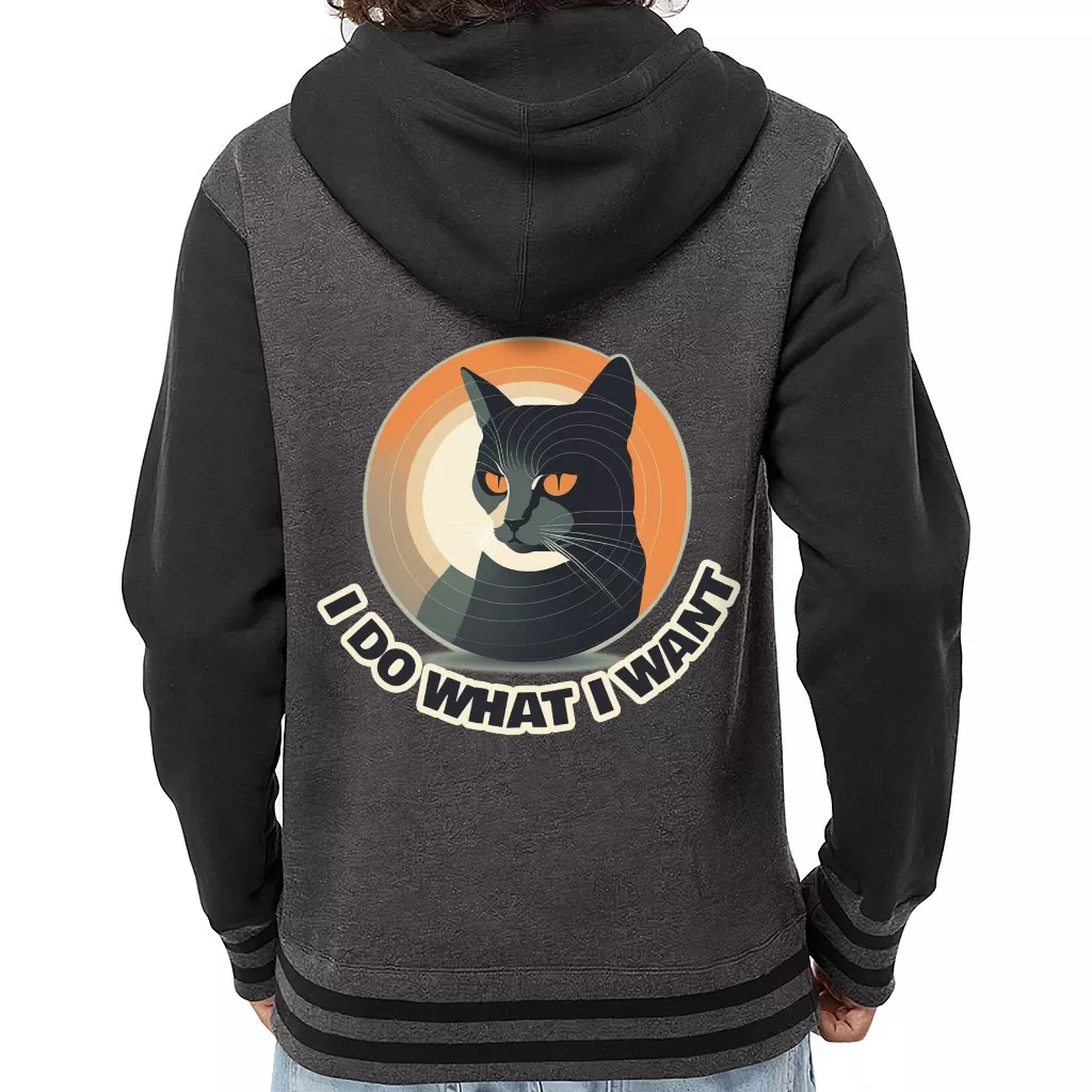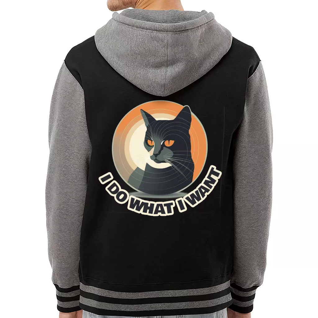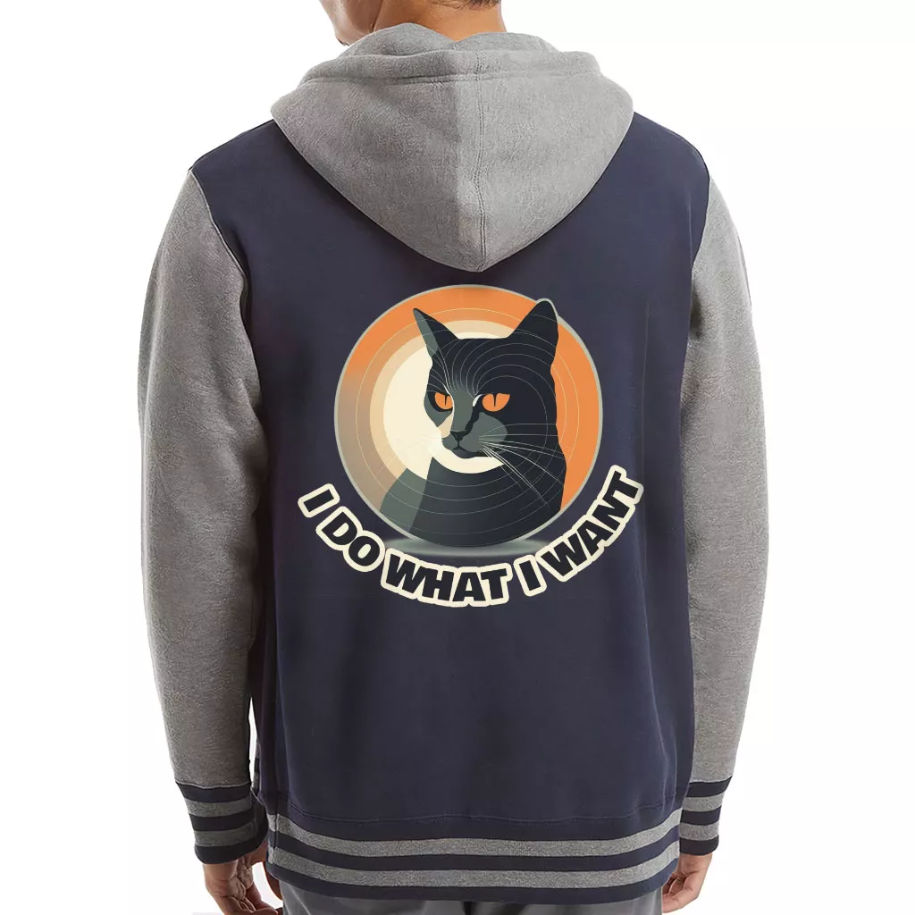 Cat I Do What I Want Varsity Hoodie – Printed Zip Hoodie – Trendy Hooded Sweatshirt