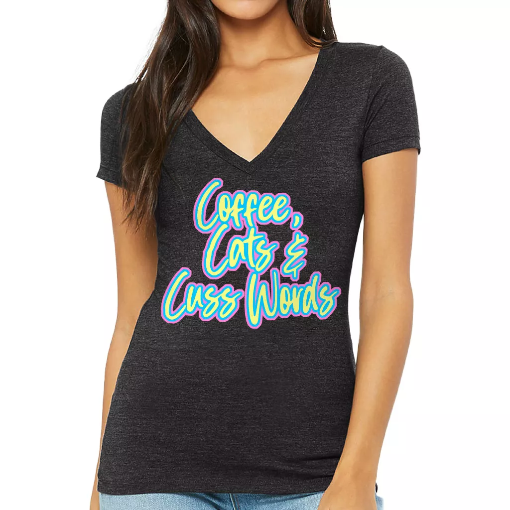 Cats Coffee Cuss Words Women’s V-Neck T-Shirt