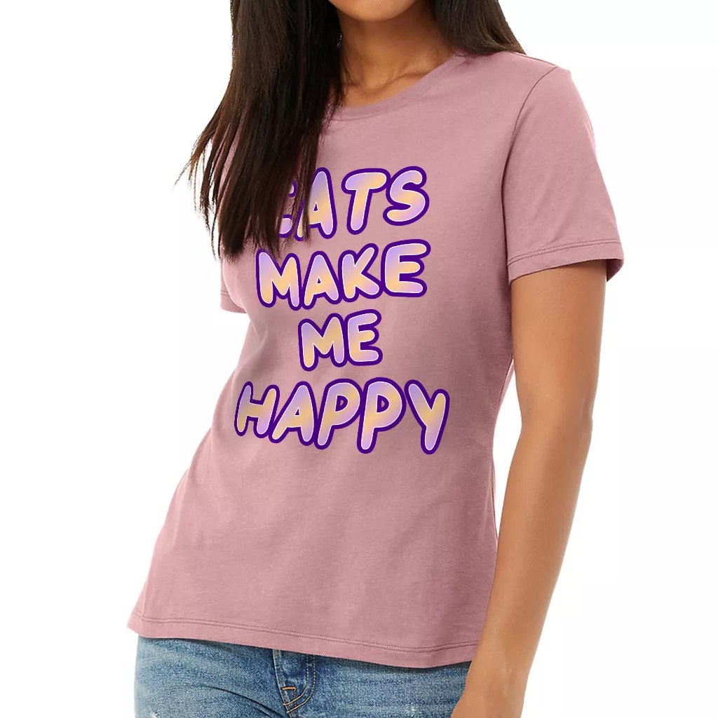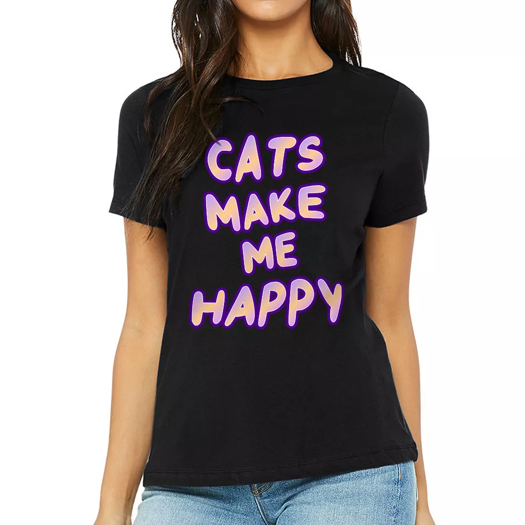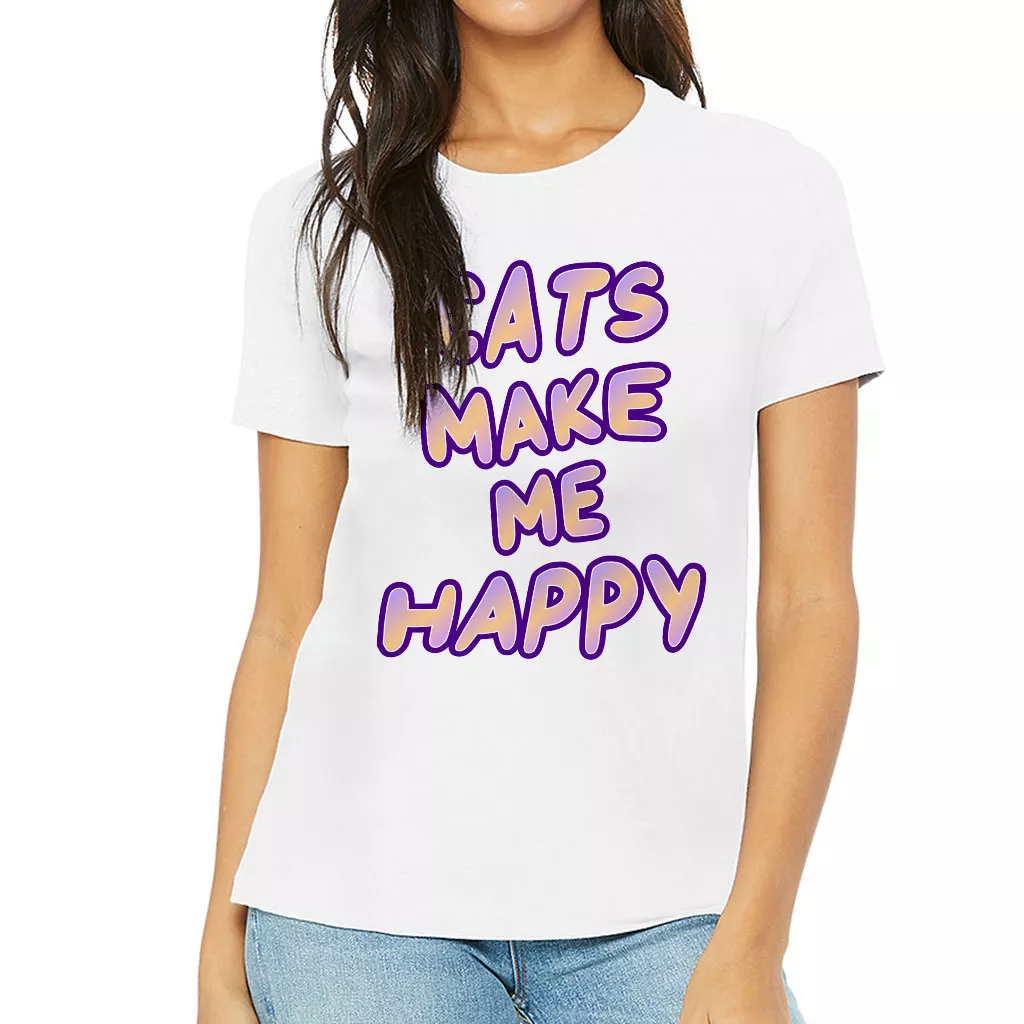 Cats Make Me Happy Women’s T-Shirt – Cute T-Shirt – Best Design Relaxed Tee