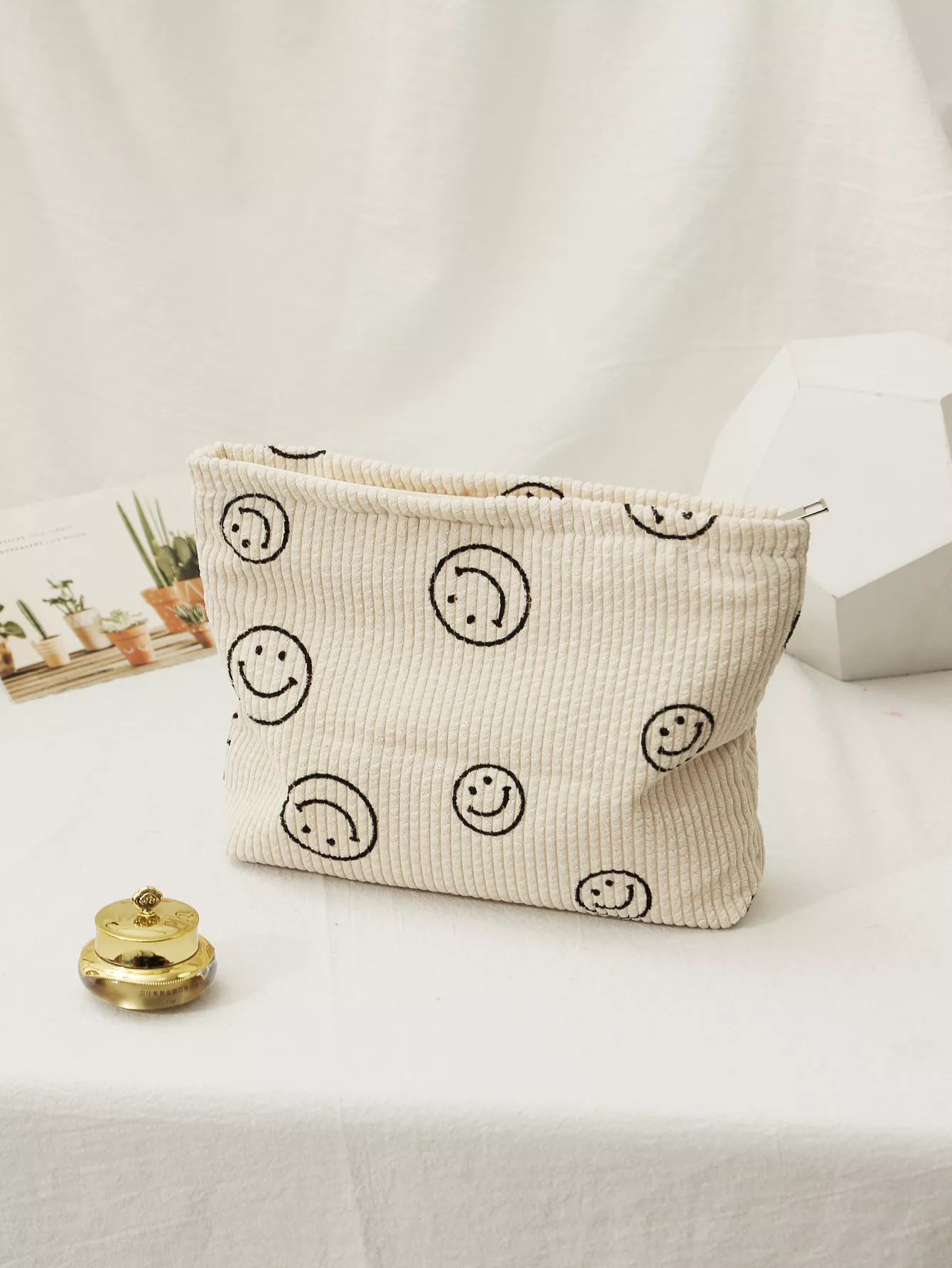 Brighten your day every time you reach for your makeup with this Chic Corduroy Makeup Bag with Smiley Face. Designed for women who love a blend of charm and practicality, this cute tote-style cosmetic pouch is perfect for storing makeup, skincare, brushes, and everyday essentials. Its aesthetic design and cozy corduroy texture bring warmth and style to your vanity, travel bag, or daily routine.