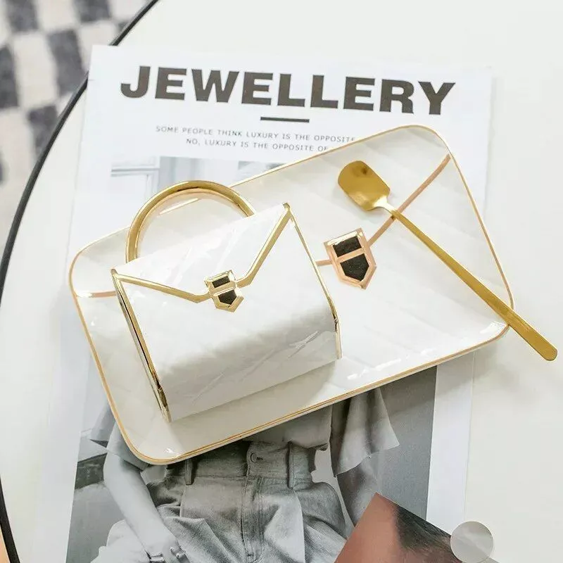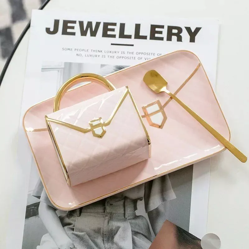 What sets our mug set apart is its perfect blend of form and function. The handbag-inspired design is not just visually appealing but also ergonomic, offering a comfortable grip. Its durable ceramic construction ensures long-lasting use, while the accompanying spoon and saucer add convenience and style. The choice of colors allows for personalization, making it a perfect gift for anyone who values uniqueness in their kitchenware.