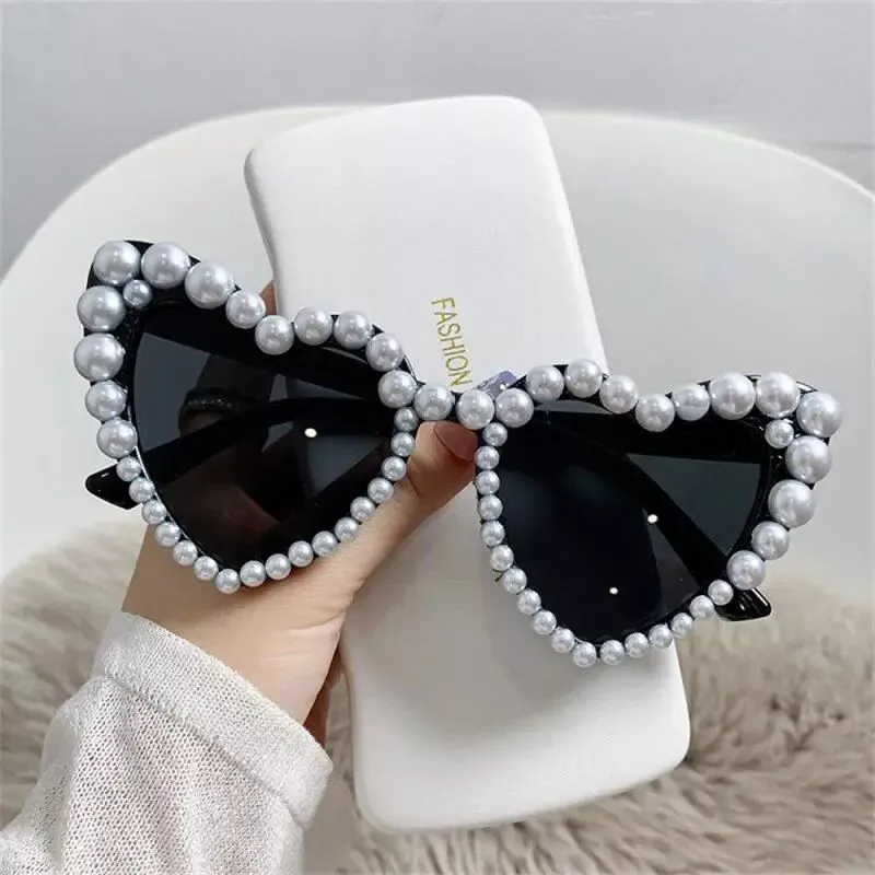 Chic Pearl-Embellished Heart-Shaped Sunglasses for Women