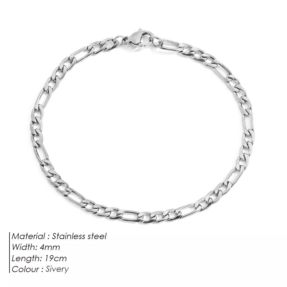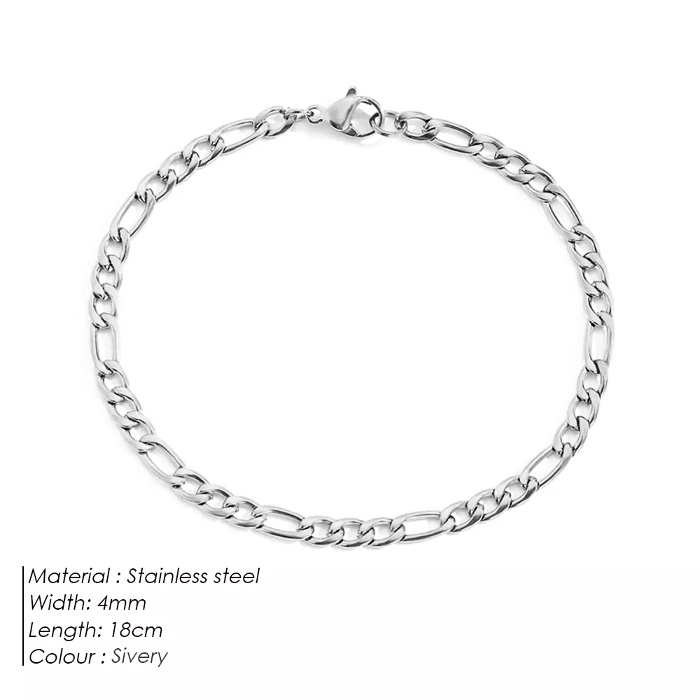 Enhance your look with the Classic Silver Figaro Chain Bracelet, a timeless piece that exudes elegance and confidence. Designed for the modern woman, this bracelet combines minimalist sophistication with a bold, trendy edge. Its gleaming silver tone and refined Figaro chain design make it the perfect accessory to complement any outfit — from casual jeans and tees to chic evening wear.