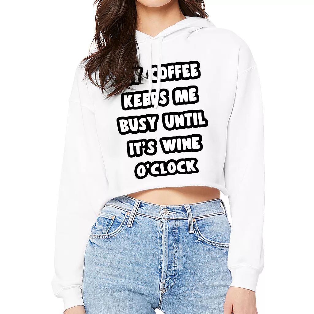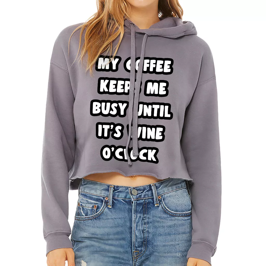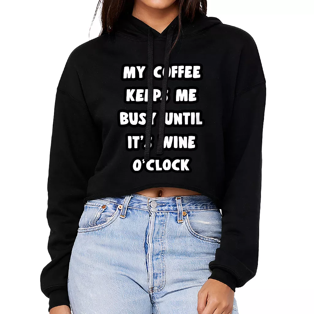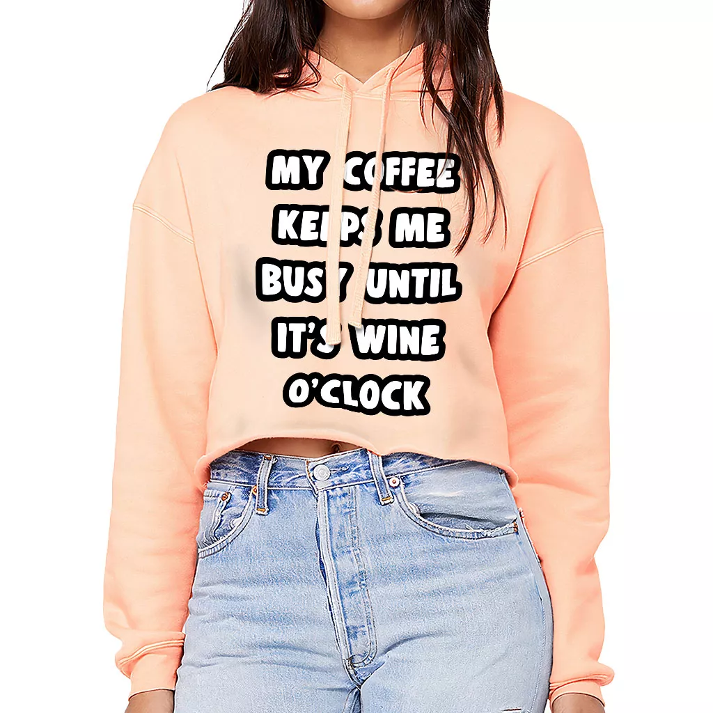 Coffee Until Wine Women’s Cropped Hoodie – Funny Cropped Hoodie – Cool Hooded Sweatshirt