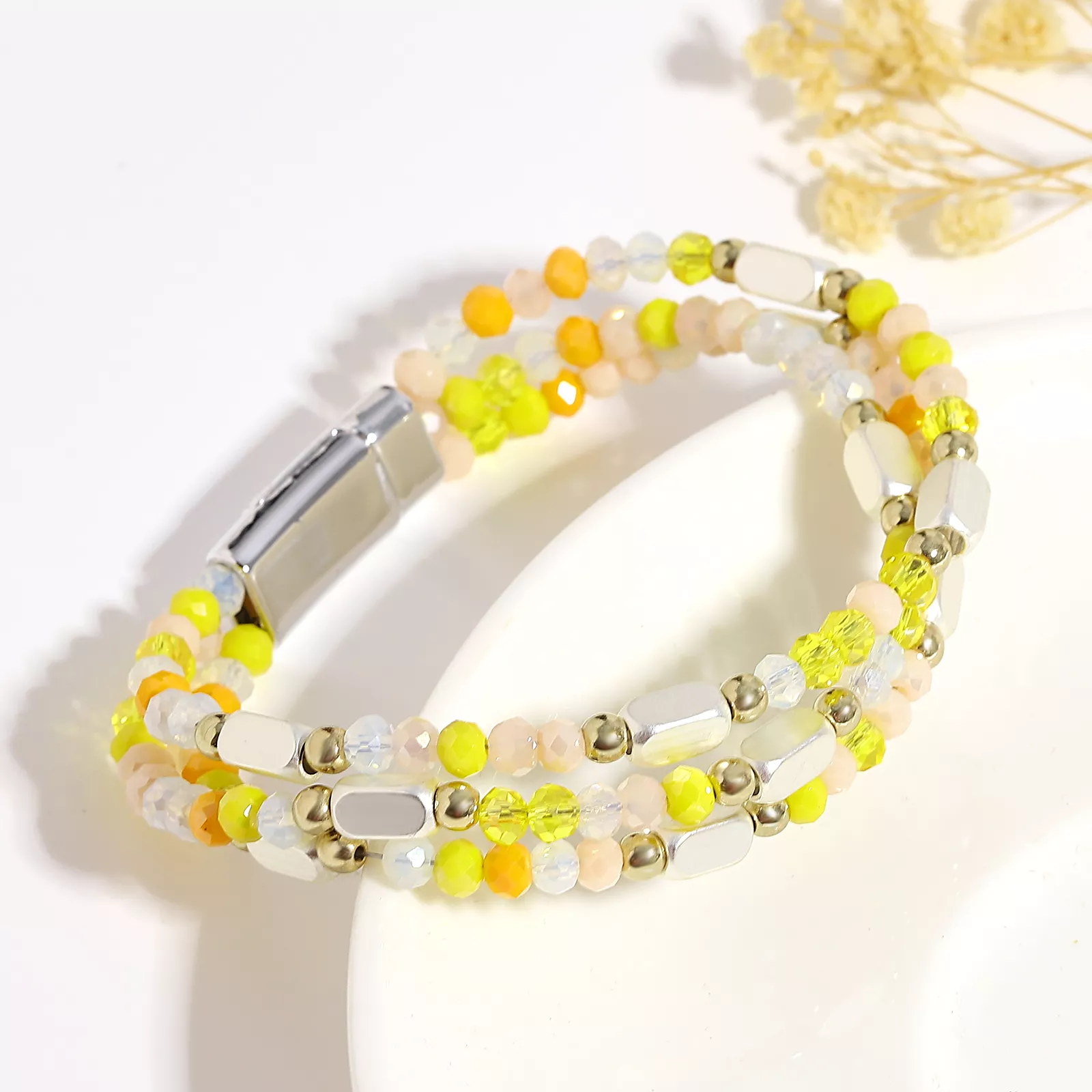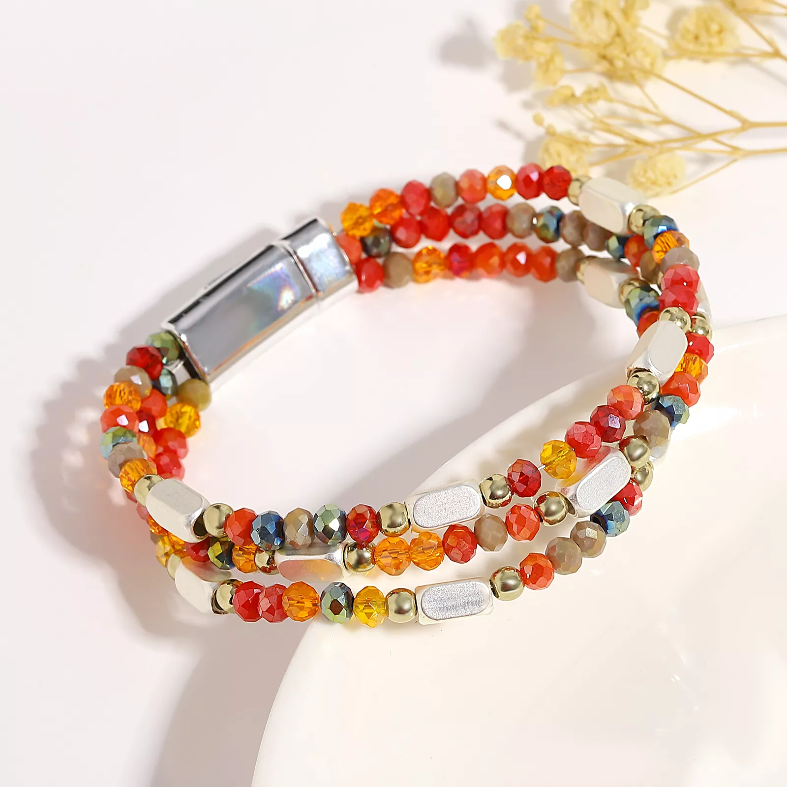 Bring out your inner glow and embrace effortless elegance with this Three-Layer Beaded Crystal Bracelet. Let its vibrant colors and shimmer remind you to shine confidently every day. Add to cart now and experience the beauty of bold, colorful style made simple.