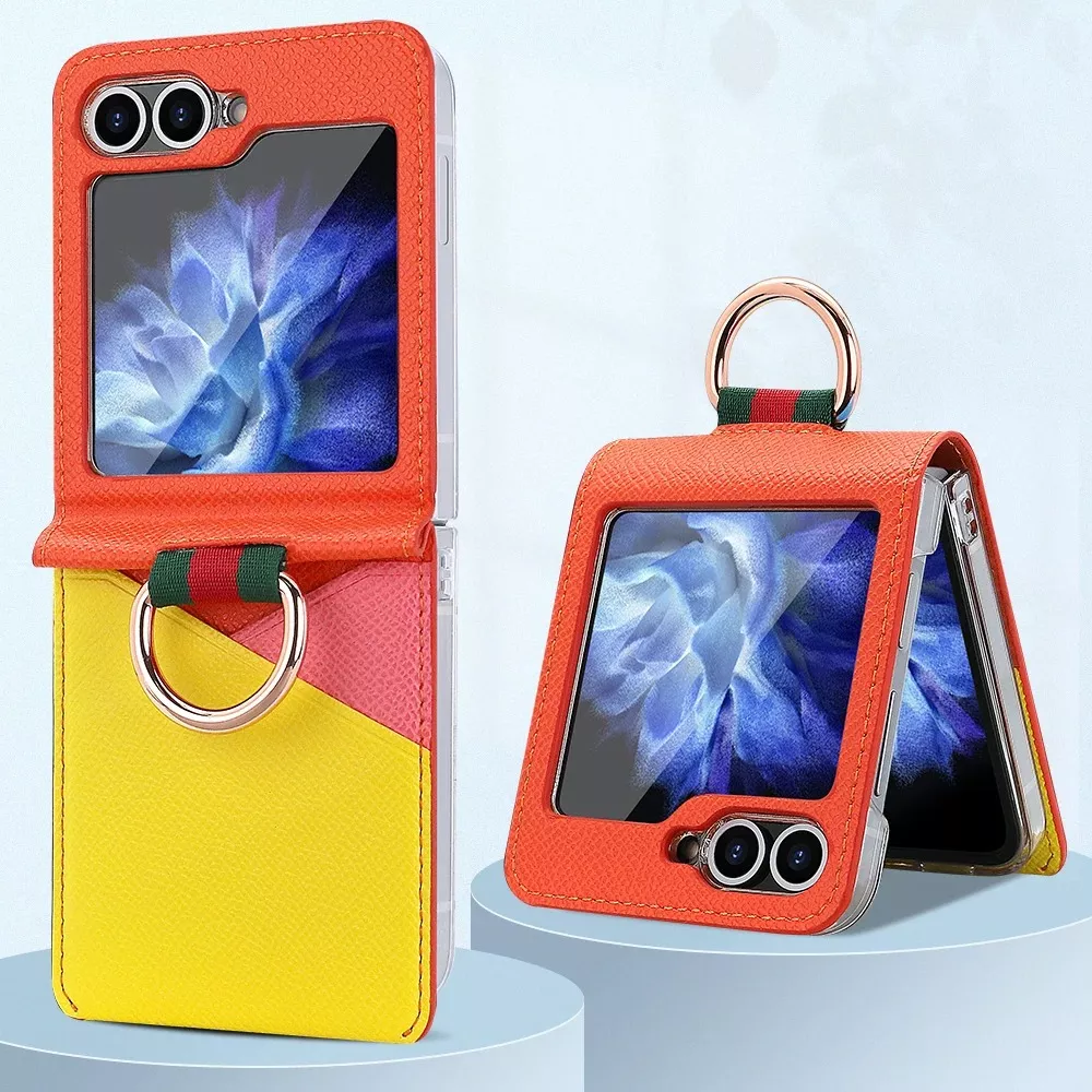 Designed with practicality in mind, this wallet case adds a touch of sophistication to your Samsung Galaxy Z Flip. The vertical bag pocket design ensures your cards stay snugly in place, while the colorful leather adds a pop of personality to your phone. Unlike ordinary cases, this one includes a ring holder, making it easier than ever to carry your phone securely or prop it up for convenient viewing angles.