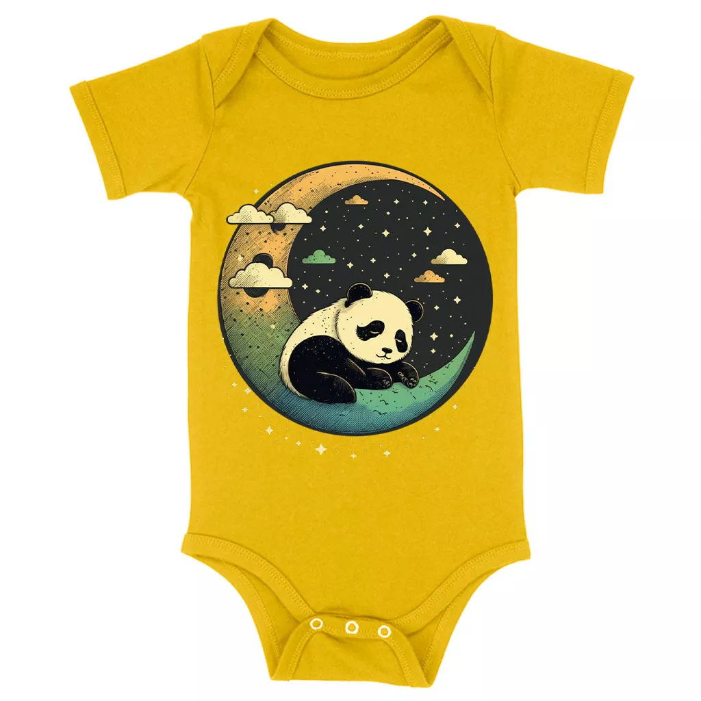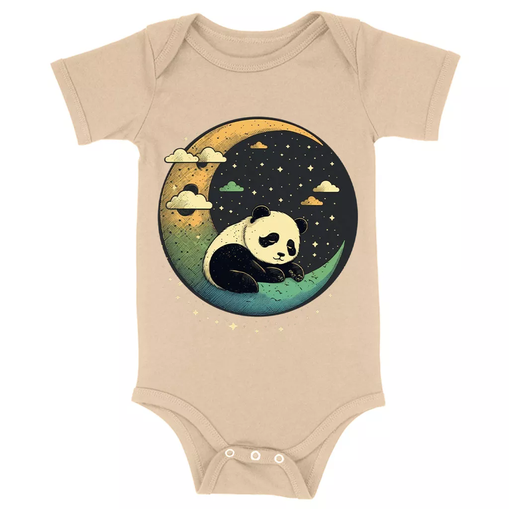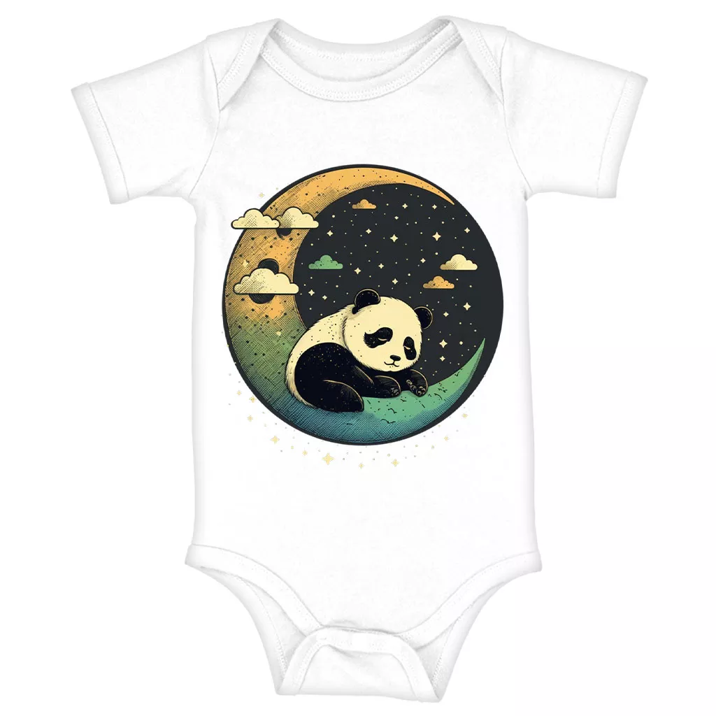 Cute Panda Baby Jersey Onesie – Moon Print Baby Bodysuit – Illustration Baby One-Piece