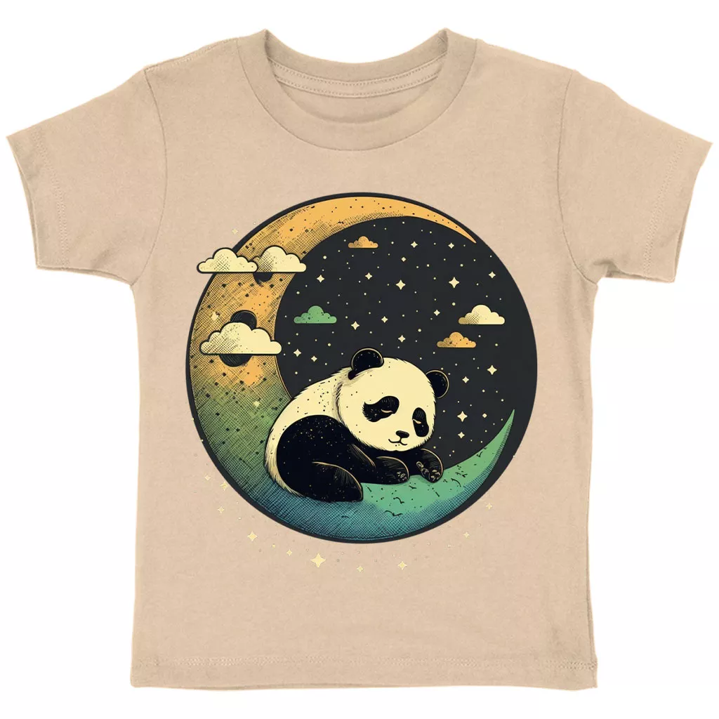 Cute Panda Toddler T-Shirt – Moon Print Kids’ T-Shirt – Illustration Tee Shirt for Toddler