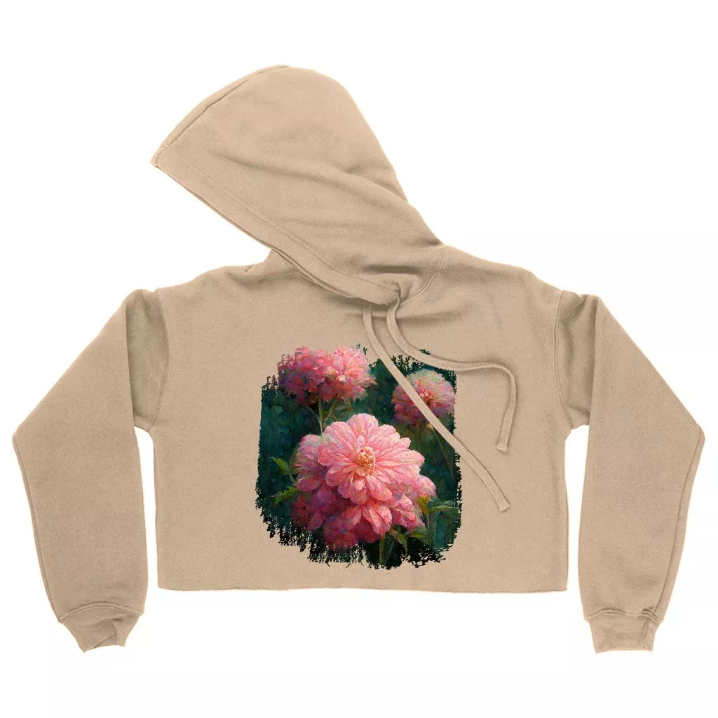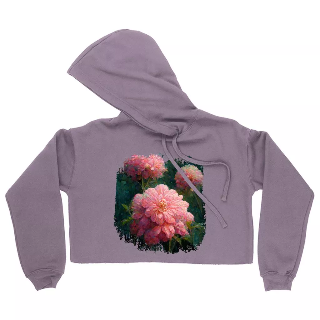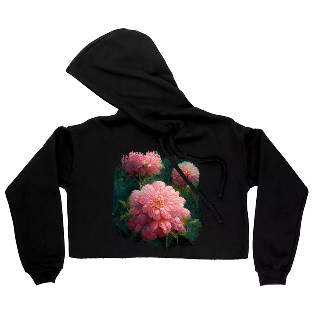 Dahlia Flower Design Women’s Cropped Fleece Hoodie – Graphic Cropped Hoodie for Women – Art Hooded Sweatshirt