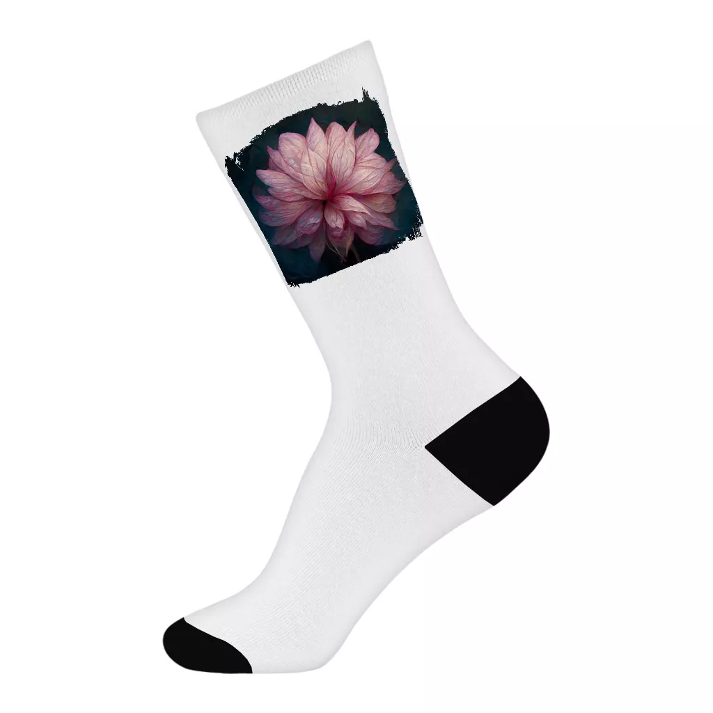 Dahlia Flower Painting Socks – Nature Novelty Socks – Unique Crew Socks