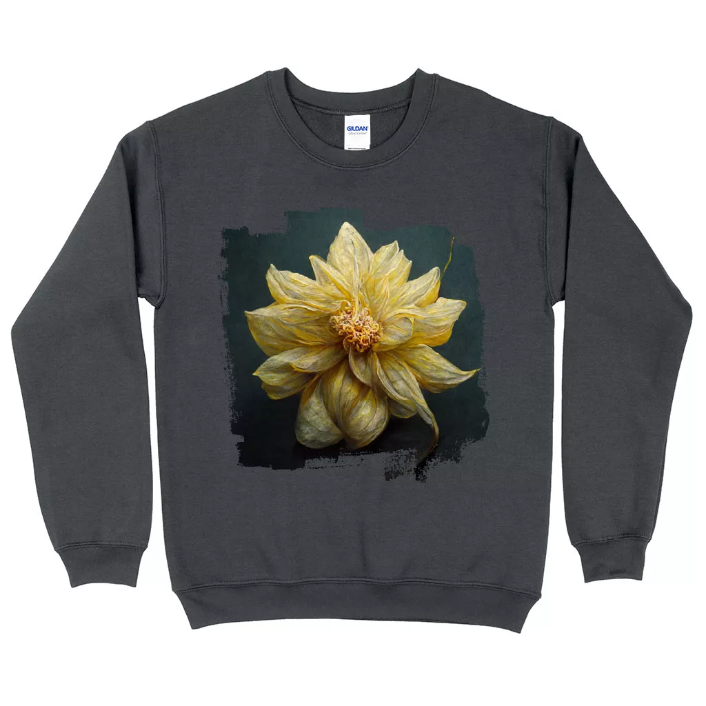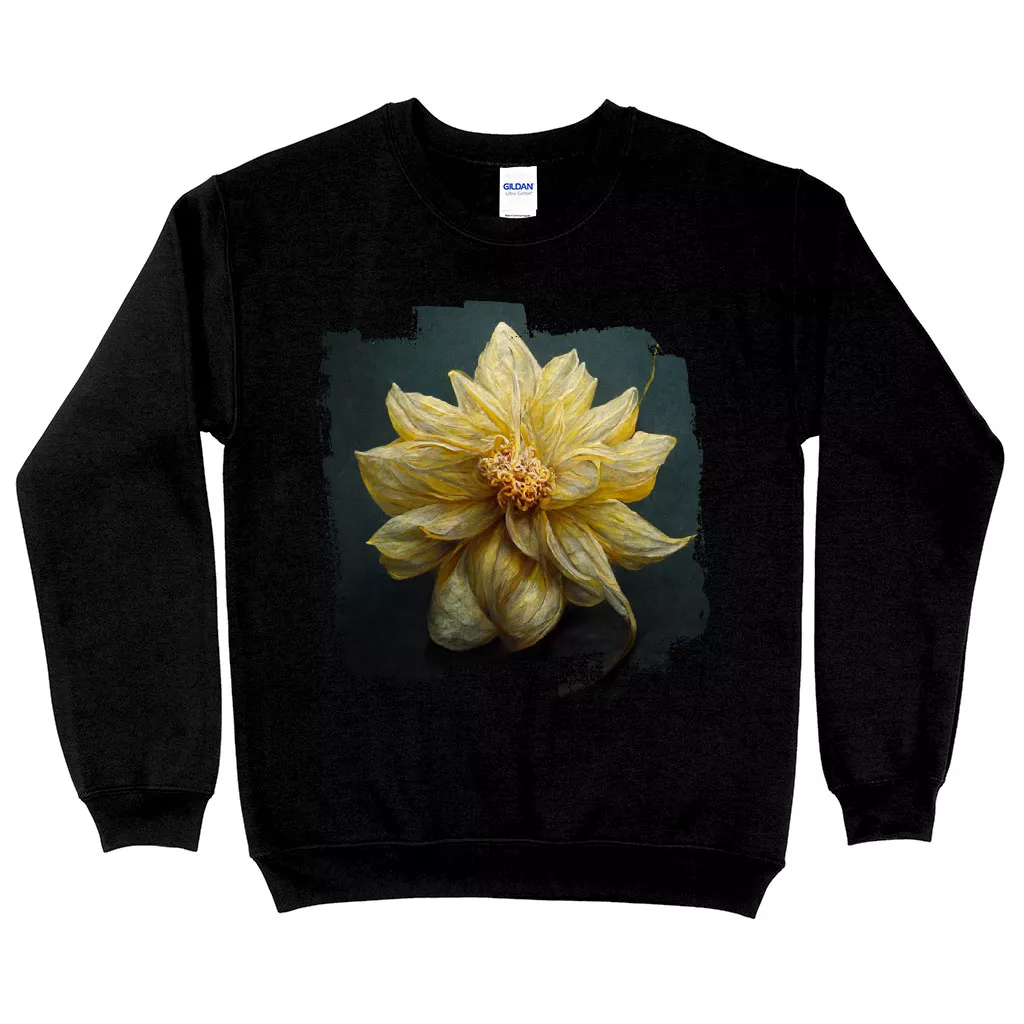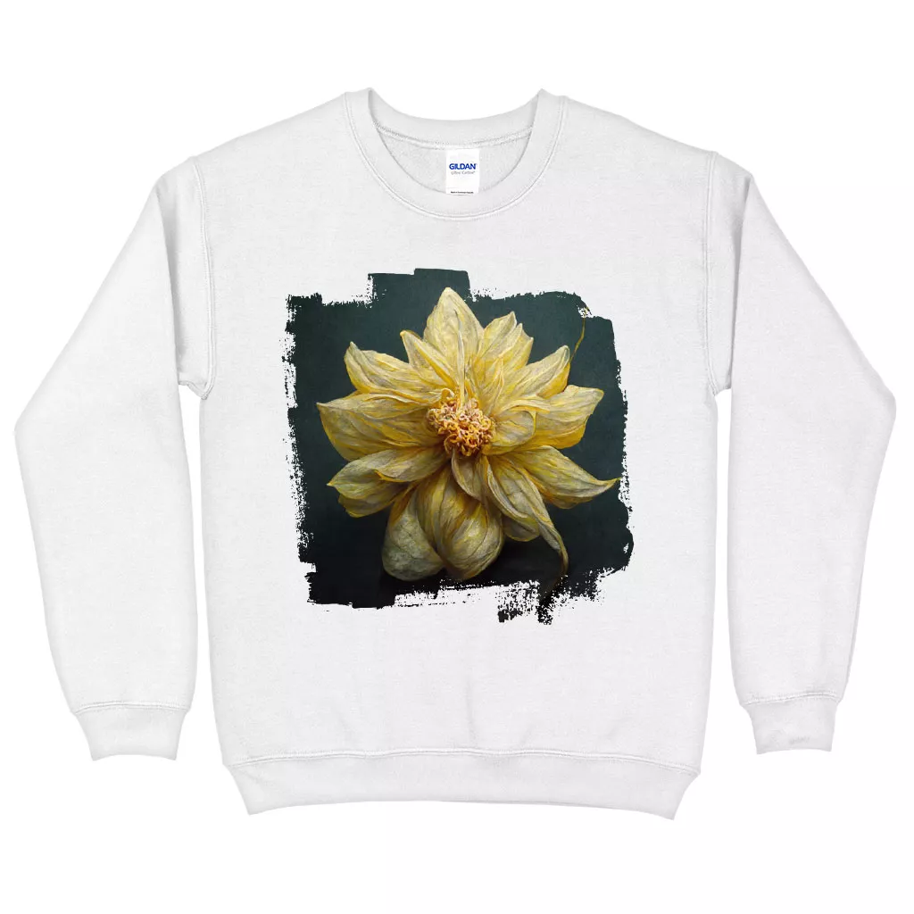 Dahlia Flower with Leaves Sweatshirt – Botanical Crewneck Sweatshirt – Colorful Sweatshirt