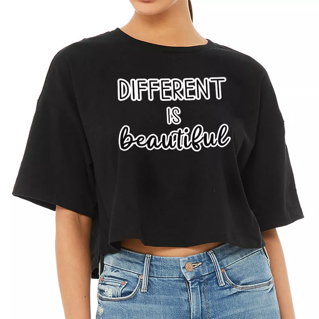 Different Is Beautiful Women’s Crop Tee Shirt – Cute Design Cropped T-Shirt – Graphic Crop Top