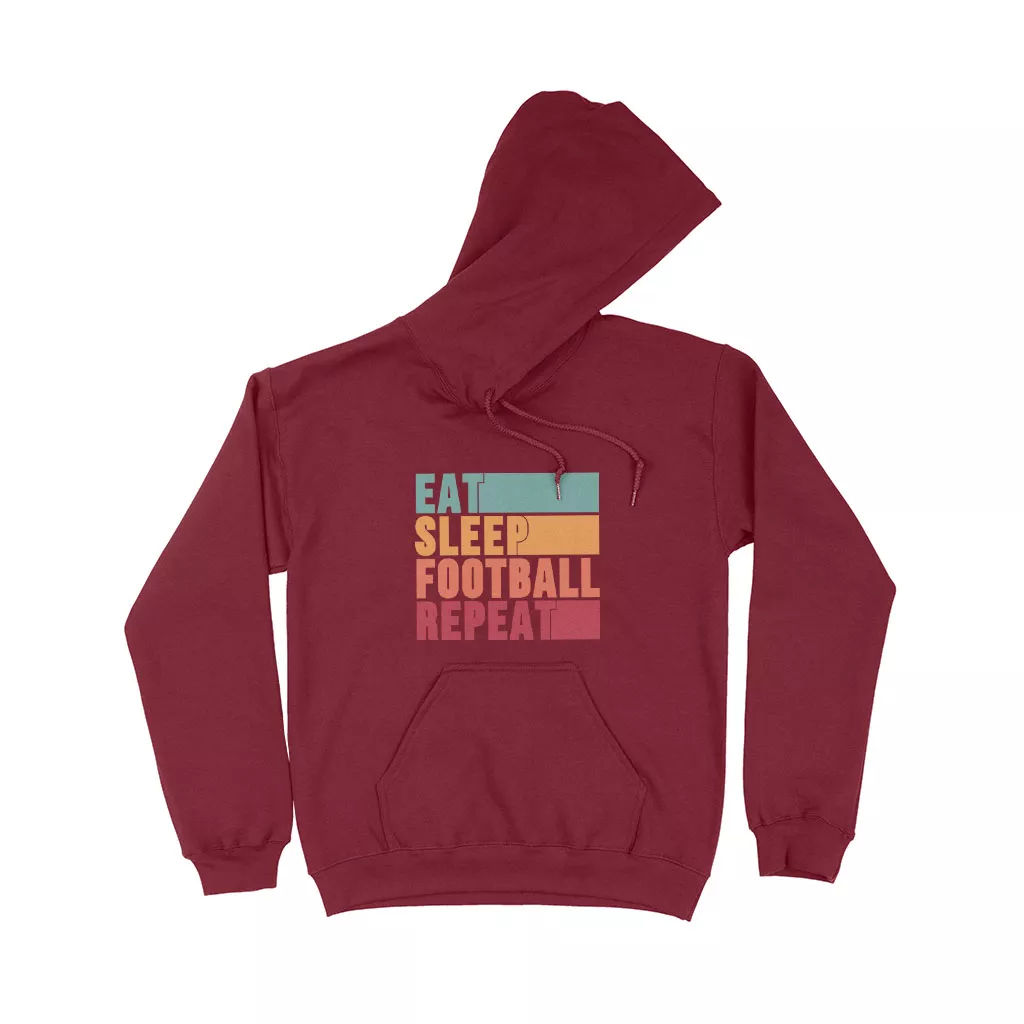 Eat Sleep Football Unisex Heavy Blend Hoodie is proudly made with 7x less water than average manufacturers, in recycle-friendly facilities that also guarantee zero sweatshop conditions.  is Designed and printed in California.