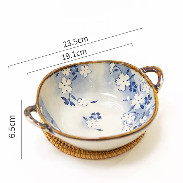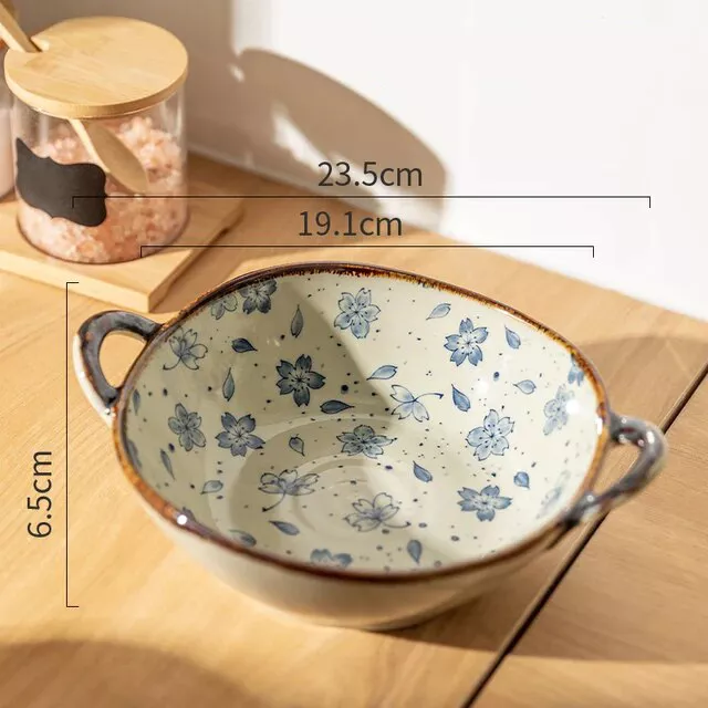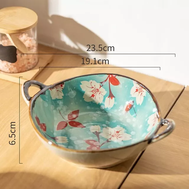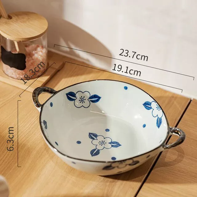 Elevate your dining experience with our Elegant Floral Ceramic Soup and Salad Bowl. Perfectly sized at 23.5*6.5 cm and boasting a capacity of 700 ml, this bowl is not just a dish but a statement of style and functionality. Its intricate floral pattern and graceful handle design add a touch of charm to any meal.