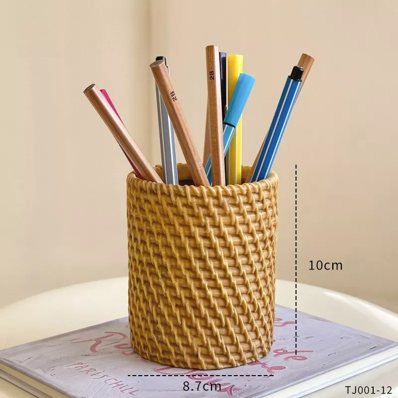 This multi-functional storage tube isn’t just practical—it’s an expression of style. The woven pattern captures the essence of traditional craftsmanship while complementing modern interiors. Its neutral tone blends beautifully with minimalist, boho, or natural home décor themes. Whether used as a pen holder on your desk, a vase for dried flowers, or a stylish utensil organizer, it adds effortless charm and organization wherever you place it.