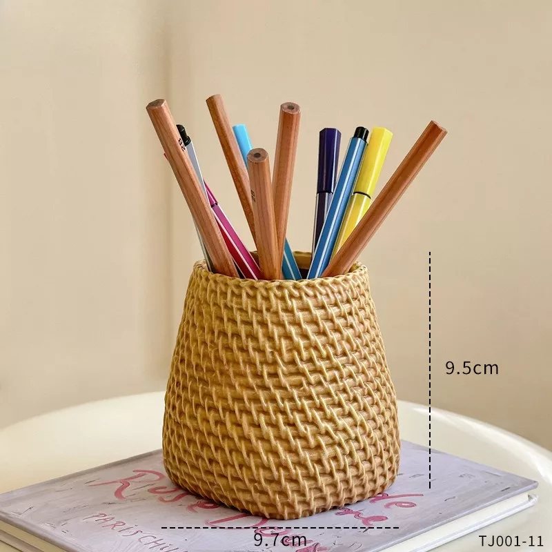 Bring a touch of nature and elegance to your workspace or home with this Imitation Rattan Woven Pen Holder & Multi-Functional Storage Basket. Designed with a handwoven look and crafted from eco-friendly bamboo, this versatile organizer combines rustic charm with practical modern functionality. Whether you’re arranging pens, makeup brushes, utensils, or even small floral displays, this beautiful basket effortlessly enhances any setting.