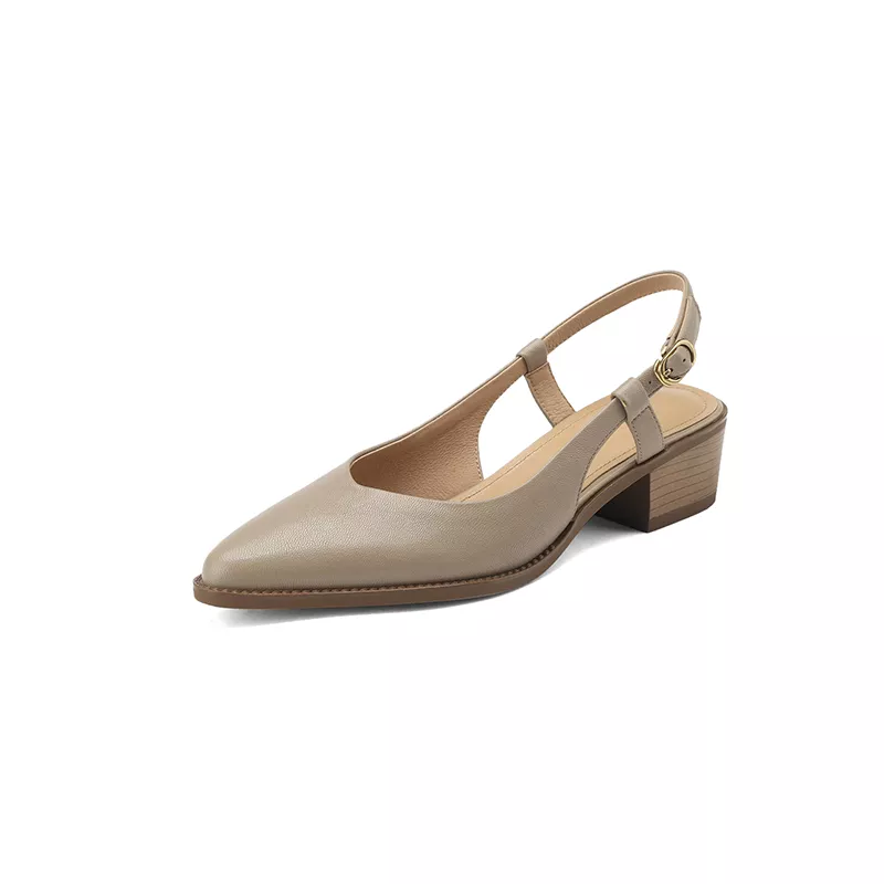Elegant Leather Slingback Office Pumps for Women – 4cm Mid Heel Sandals